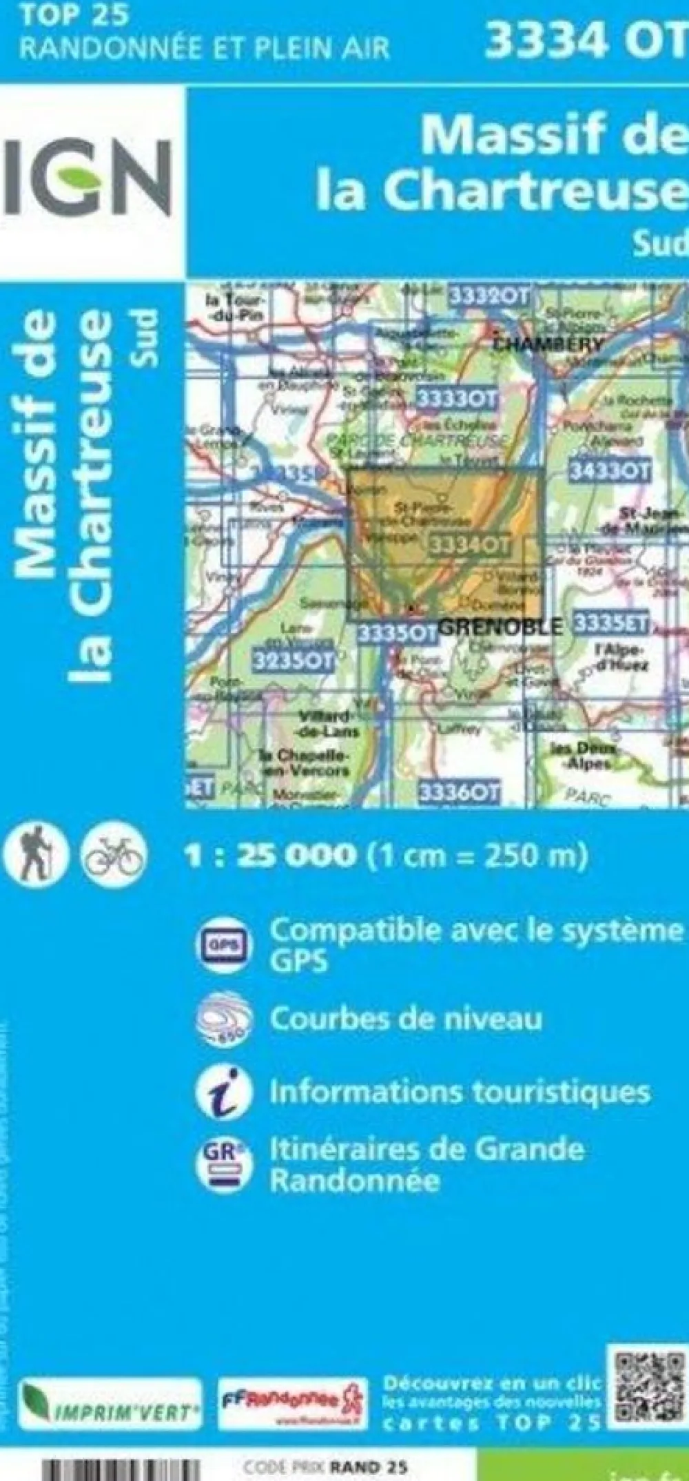 Uitstekende, topografische wandelkaart nummer 3328et Thonon-les-Bains: het zuiden van de regio Chartreuse, ten noorden van Grenoble.