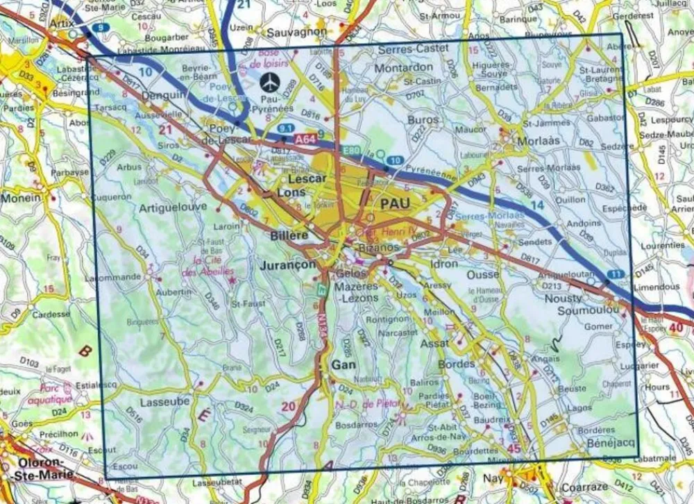 Communes couvertes : Pau, Denguin, Montardon, Serres-Castet, Meillon, Aressy, Narcastet, Lasseubetat, Buros, Aubertin, Bourdettes, Mazères-Lezons, Gelos, Artigueloutan, Andoins, Lagos, Bordères, Ouillon, Saint-Jammes, Angais, Nousty, Gomer, Uzos, Beuste, Gabaston, Espéchède, Billère, Lons, Jurançon, Lescar, Idron