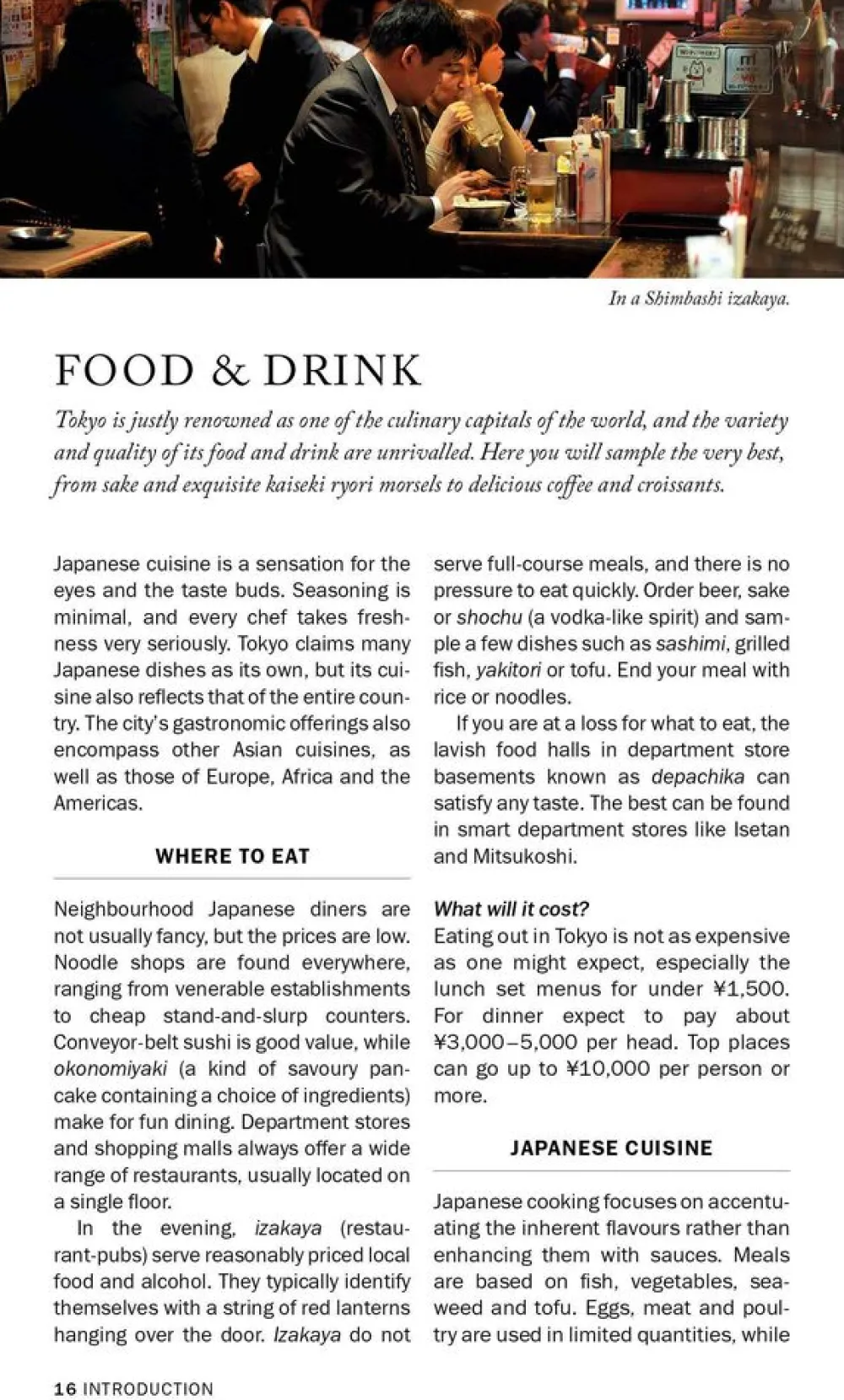 – Covers: The Imperial Palace and around; Marunouchi and Ginza; Rappongi and Akasaka; Aoyama and Harajuku; Shibuya and Ebisu; Shinjuku; Yanaka and Ueno; Ikebukuro and Mejirodai; Asakusa; Fukagawa and Ryogoku; Tsukudajima and Toyosu; Odaiba; Kawagoe; Kamakura and Enoshima; Hakone; Nikko
