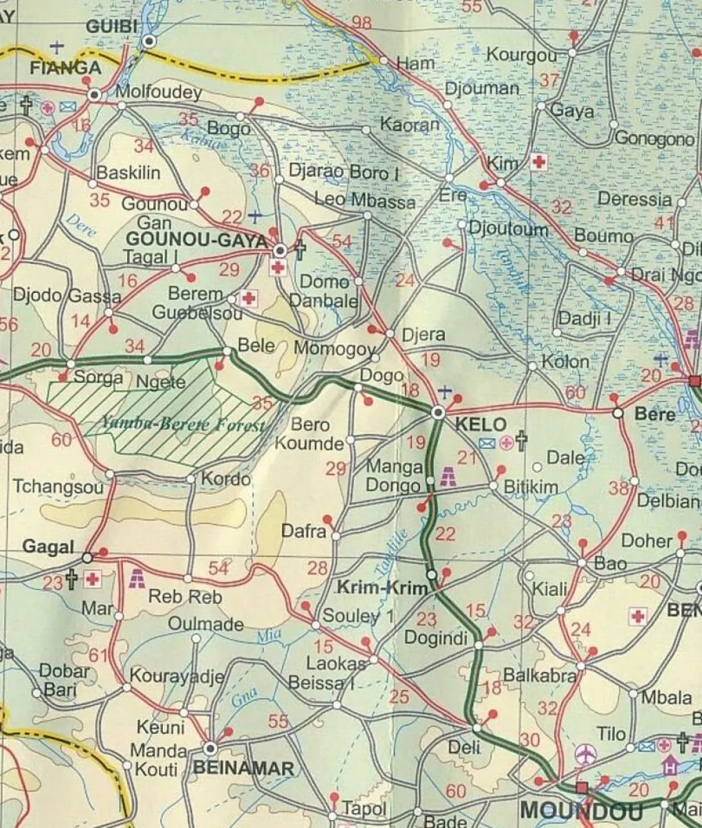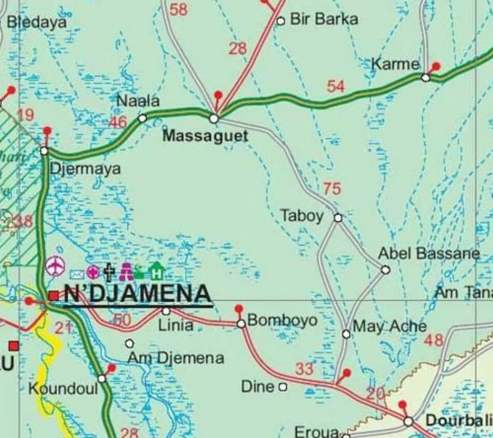 Wegenkaart Tsjaad. Schaal 1:1.500.000