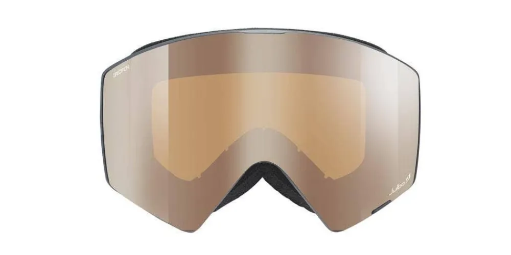 Met een gedurfde, oversized stijl die naadloos over elke helm past en een pasvorm die precies is, en de hele dag comfortabel is, is de Julbo SHARP helemaal klaar voor de poedersneeuw. De oversized cilindrische lens en het frameloze chassis zorgen voor een breed en genereus gezichtsveld zodat je vol vertrouwen alles kunt overzien. Geïntegreerde ventilatieopeningen beperken de mist tot een minimum, ongeacht wat de bergen je voor de voeten werpen. Cat. 3 polycarbonaat (Spectron) lens (doorlaatbaarheid zichtbaar licht: 13%). Geschikt voor gebruik in matige tot volle zon, of bij alle buitenactiviteiten in goede omstandigheden. De skibril is voorzien van een anti-condenscoating.