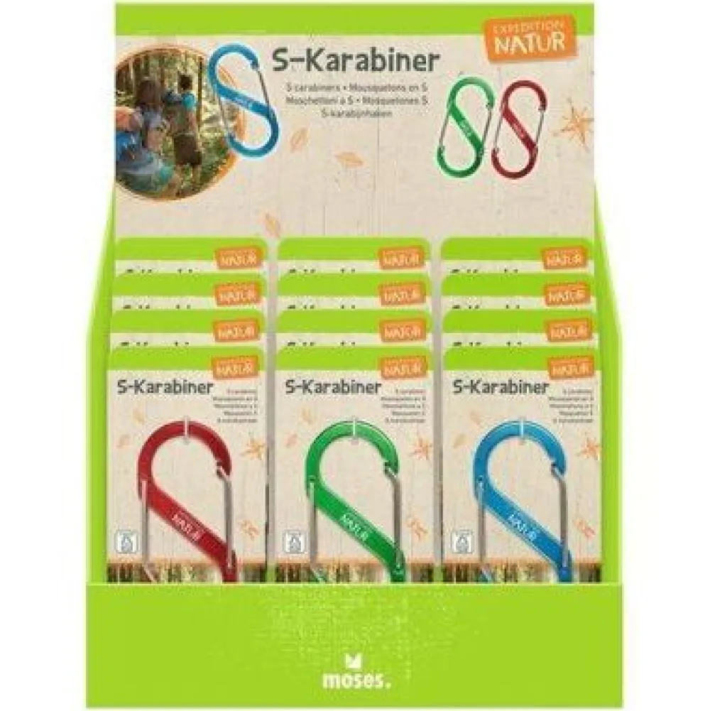 Stevige S- karabijnhaak met max 30 kg draagkracht en dubbele klip-functie. Materiaal: RVS met aluminnium legering. Afmeting 4x9x0,6 cm. U ontvangt een willekeurige kleur.