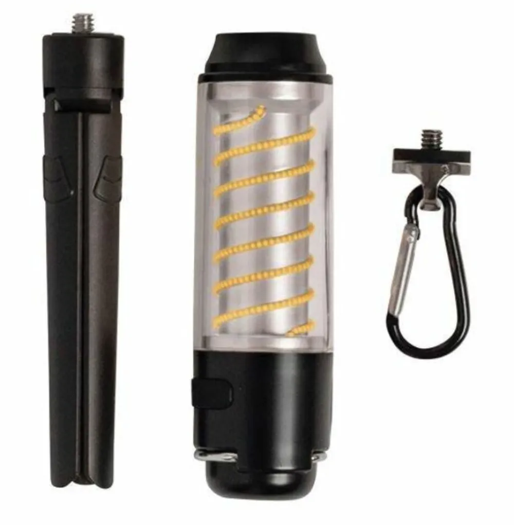 Lamp te gebruiken als tafellamp, zaklamp en dankzij de karabijnhaak is de lamp op te hangen.