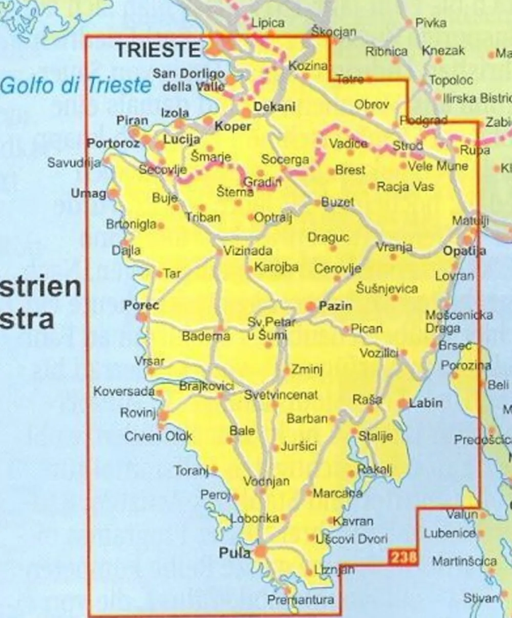 Uitstekende fietskaart-wandelkaart 238 van Istrië: