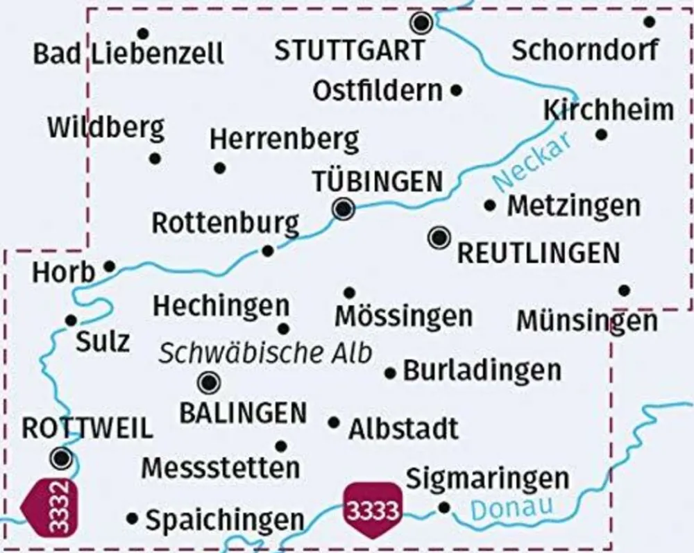 Uitstekende fietskaart 3331 van het gebied rondom 3331 Stuttgarts Süden – Thübingen: