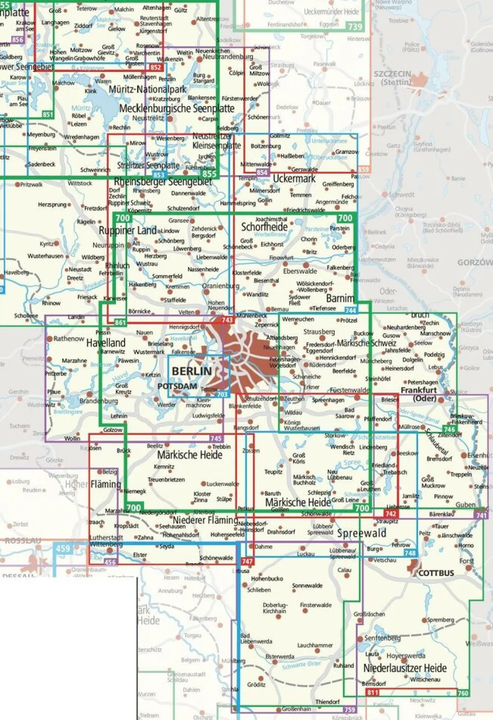 Uitstekende topografische wandelkaart 744 van Schorfheide, Uckermark en Barnim in Brandenburg ten noorden van Berlijn