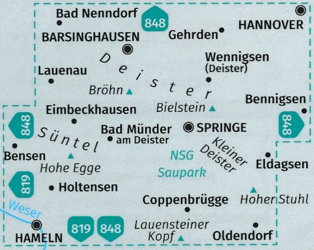 Plaatsen op de kaart: Eimbeckhausen, Springe, Barsinghausen Gehrden, Bennigsen, Coppenbrügge, Holtensen, Hameln.