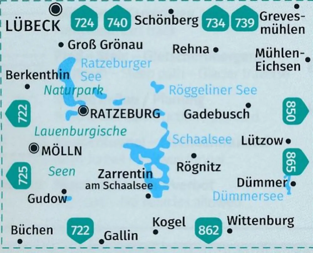 Lübeck, Schönberg, Grevesmühlen, Groß Grönau, Rehna, Mühlen-Eichsen, Berkenthin, Ratzenburg, Gadebusch, Lützow, Mölln, Rögnitz, Dümmer, Zarrentin am Schaalsee, Gudow, Büchen, Gallin, Kogel, Wittenburg