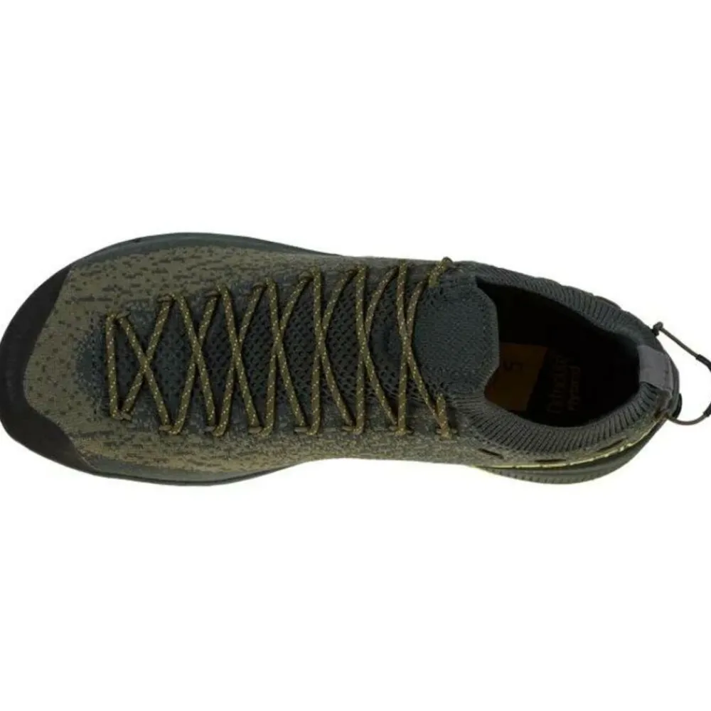 De TX2 Evo van La Sportiva is de lichtste schoen in de Traverse X approach-serie: heeft veel grip, geeft bescherming, minimale volumes en is lichtgewicht, vereisten bij technische beklimmingen/approaches en tijdens multi-pitch routes. De schoen heeft een zool met een 100% verzoolbaar loopvlak dat de levenscyclus verdubbelt van de schoen, en er is gebruik gemaakt van gerecyclede materialen voor een lagere impact op het milieu. De schoen is ontworpen voor een snelle en gemakkelijke verzoling door het loopvlak uitsluitend te vervangen bij geautoriseerde La Sportiva verzolers. Het bovenwerk is naadloos en zeer aansluitend dankzij de geïntegreerde tong die openingen elimineert en de voet omhult voor maximaal comfort en bescherming. De stof die wordt gebruikt voor het bovenwerk, de veters, het Ortholite® Hybrid Approach-voetbed en een deel van de EVA tussenzool zijn ook gemaakt met gerecyclede en veganistische materialen. Vibram® IdroGrip-zool met klimzone ontworpen voor maximale grip op technisch terrein.