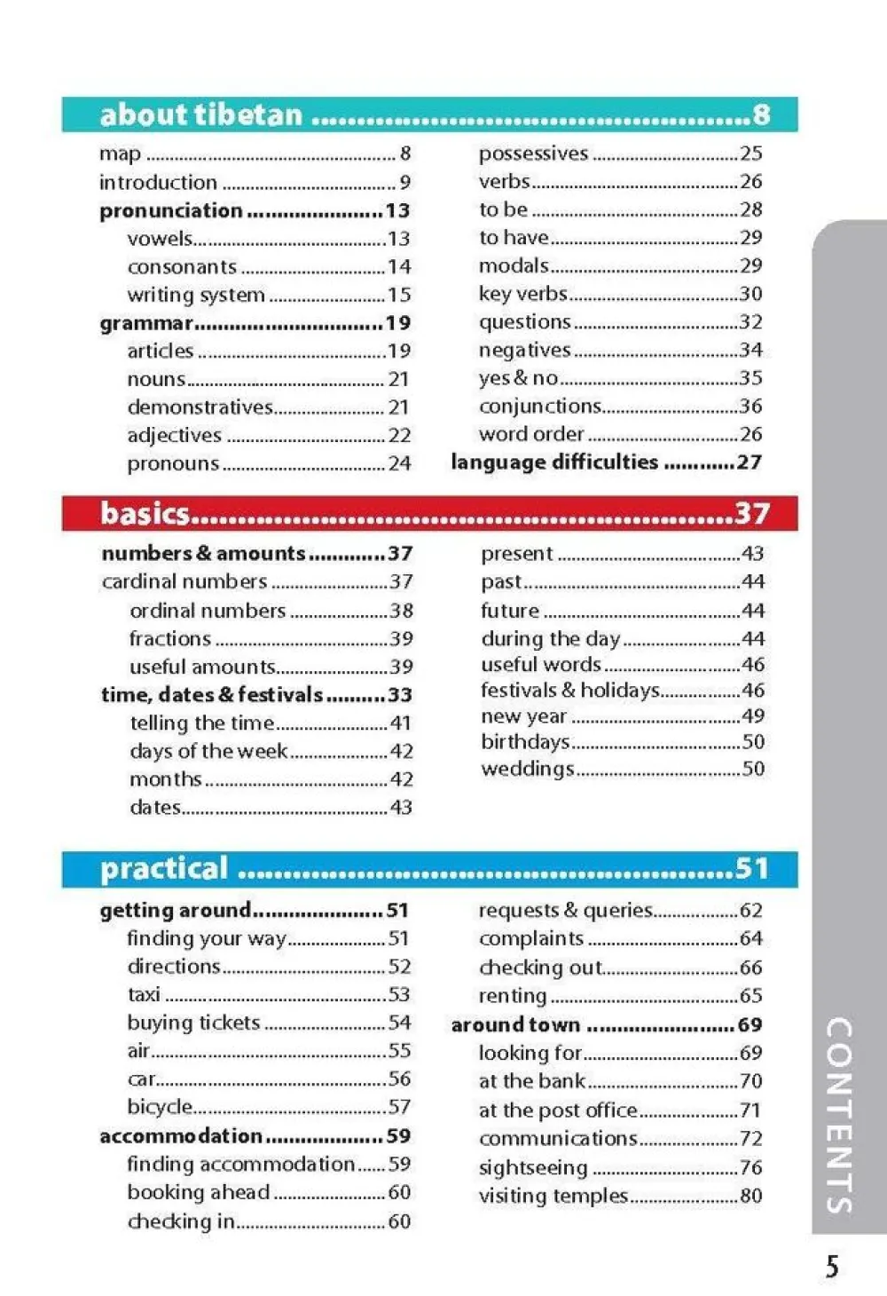 - Practical – travel with kids, disabled travellers, senior travellers, sightseeing, business, banking, post office, internet, phones, repairs, shopping, bargaining, accommodations, directions, border crossing, transport