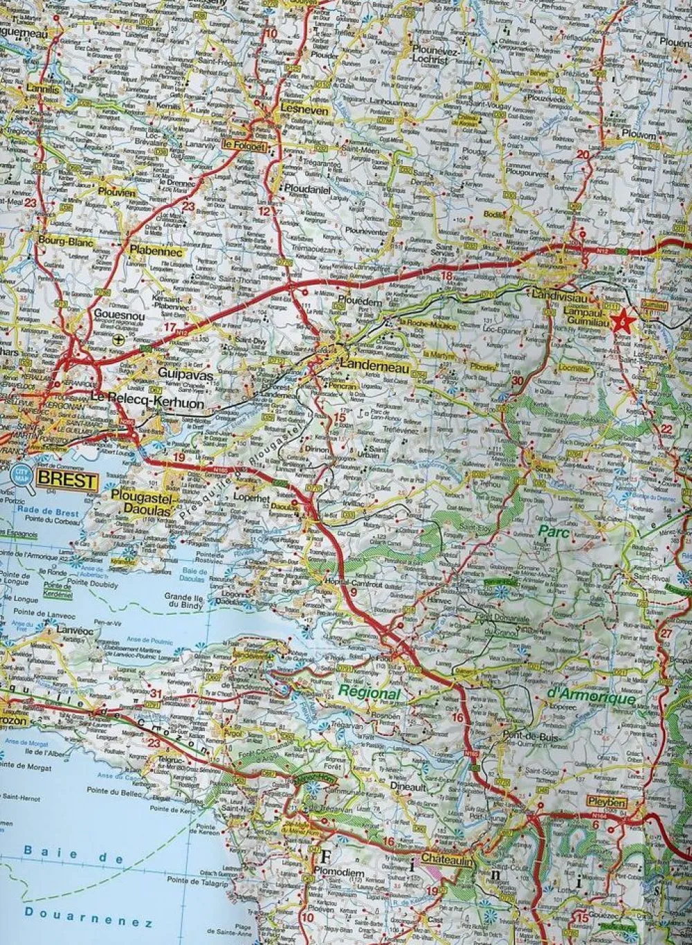Prettig leesbare wegenkaart van Bretagne: