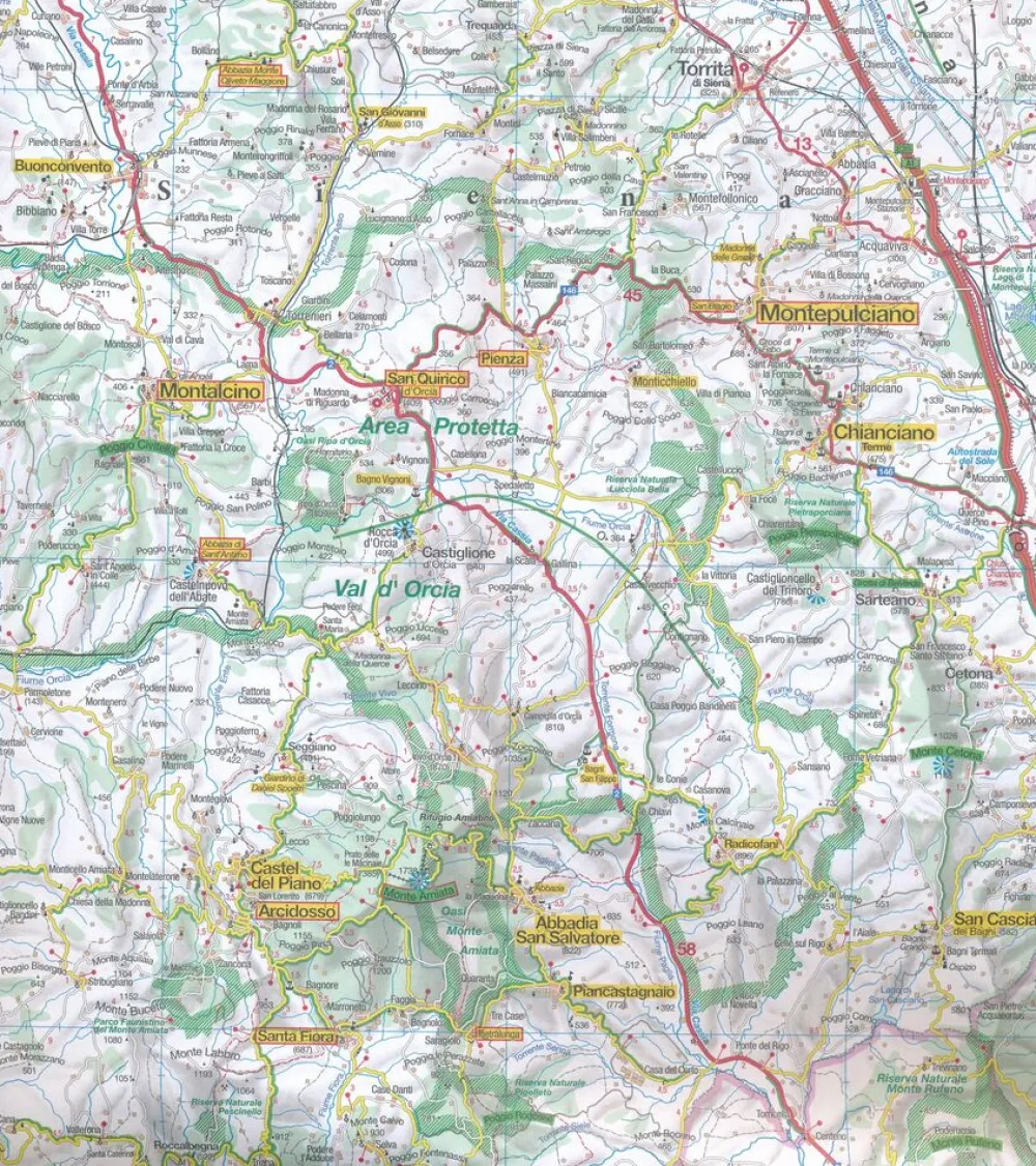 Hauptkarte im Maßstab 1:200 000/ Übersichtskarte zum Ausklappen/ Entfernungstabelle/ Index: mehrsprachige Legende (I, D, GB, F, SLO, E, CZ, PL)/ Marco Polo Highlights/ 14 Citypläne: – Ancona – Arezzo – Ascoli Piceno – Assisi – Foligno – Gubbio – Macerata – Orvieto – Perugia – Pescara – Spoleto – Terni – Todi – Urbino Verkehrsinformationen/ Reiseinformationen/ Ortsregister mit Provinz, Postleitzahl und Suchfeldangabe, ausgewählten Sehenswürdigkeiten, Landschafts- und Gewässernamen.
