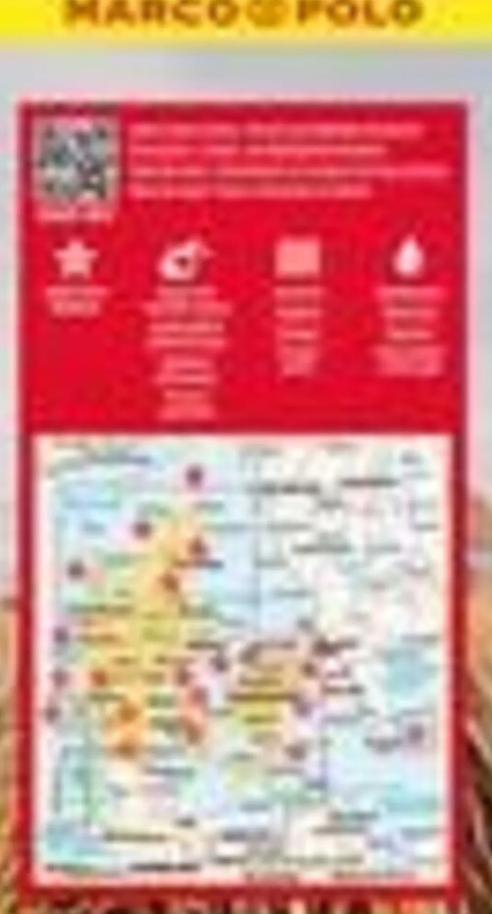 This Marco Polo map features really easy to read cartography. Topography is highlighted with relief shading and loads of spot heights and the road network is clearly shown with roads ranging from motorways all the way through to minor secondary roads. The map also clearly indicates airports, places of interest, scenic/tourist routes, view points etc.