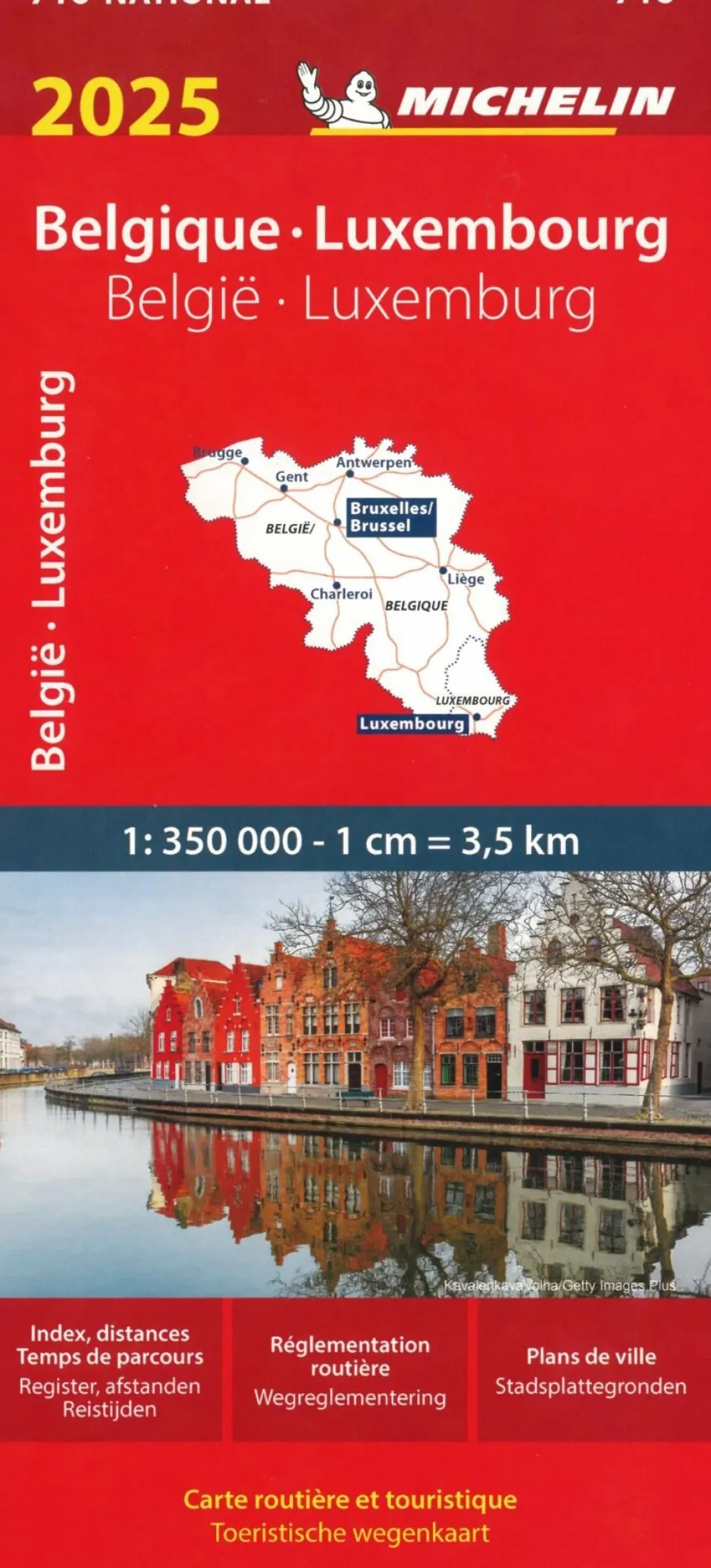 Belgium and Luxembourg at 1:350,000 from Michelin with information on driving regulations in each country, a distance and journey time table, plus enlargements showing in greater detail road access to Antwerp, Brussels, Liège and Luxembourg City which also has a small plan of its centre.