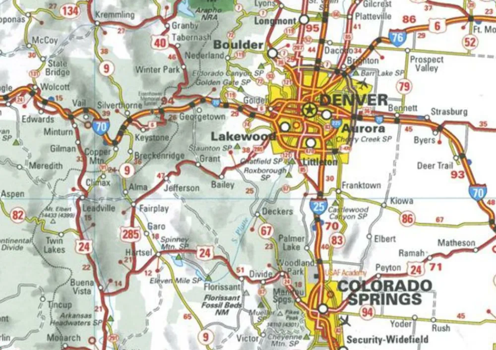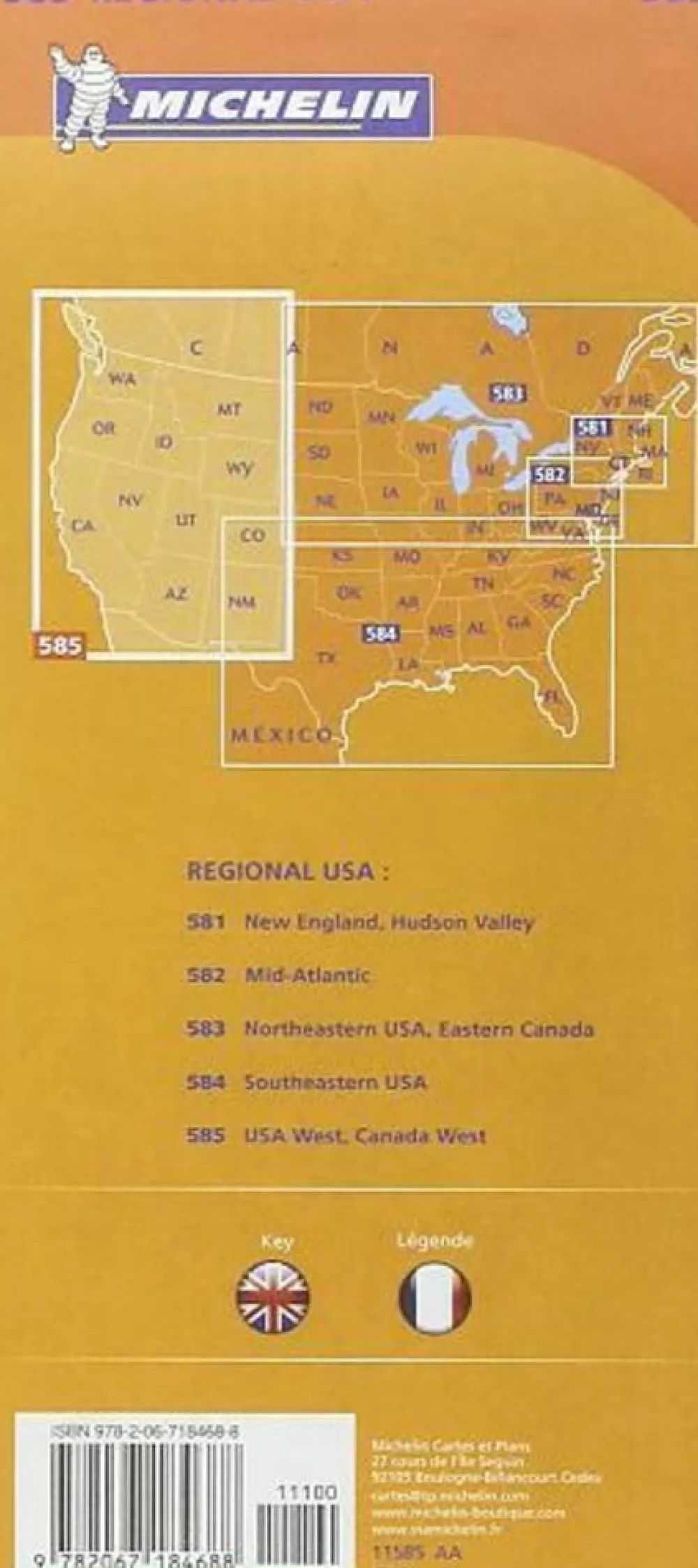 Wegenkaart /overzichtskaart 585 van het westen van de Verenigde Staten en Canada: Montana, Wyoming, Colorado, Utah, New Mexico, Arizona, Nevada, Iadho, Washington, Oregon, Californië, Vancouver, British Columbia: