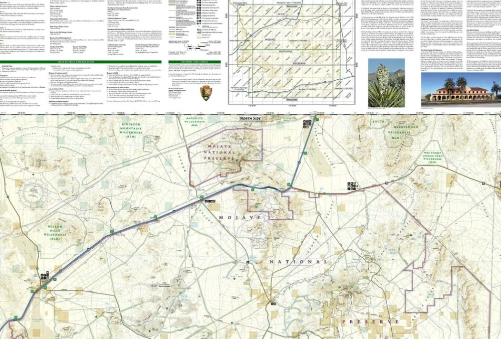 Topografische wandelkaart 256, scheurbestendig en watervast, van de National Preserve Mojave in Californië.