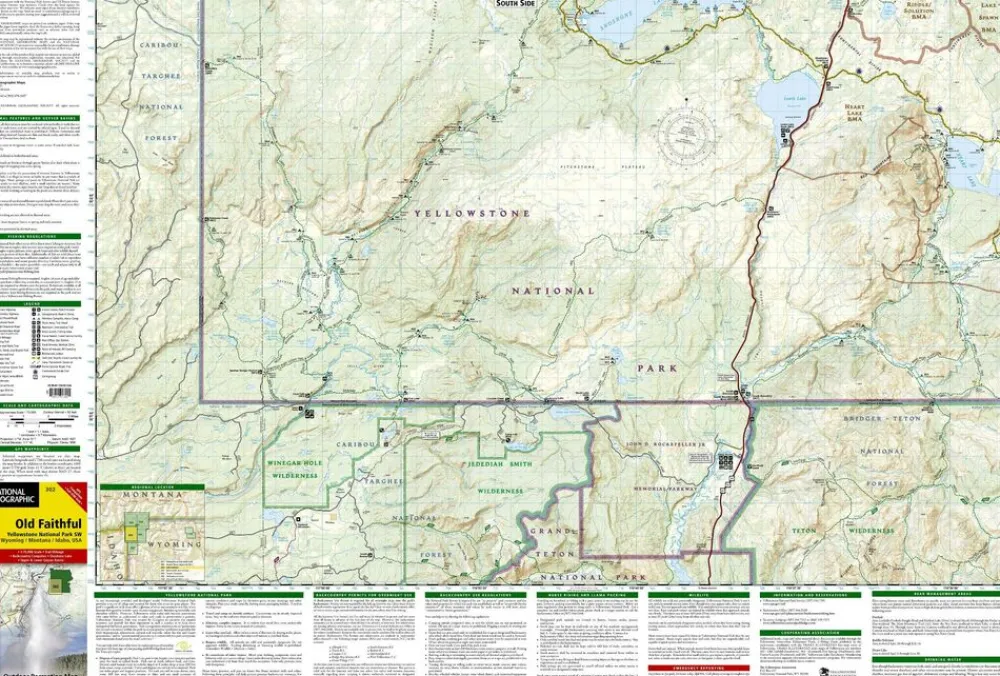 Topografische wandelkaart, scheurbestendig en watervast, van de Old Faithful in het zuidwesten van Nationaal Park Yellowston