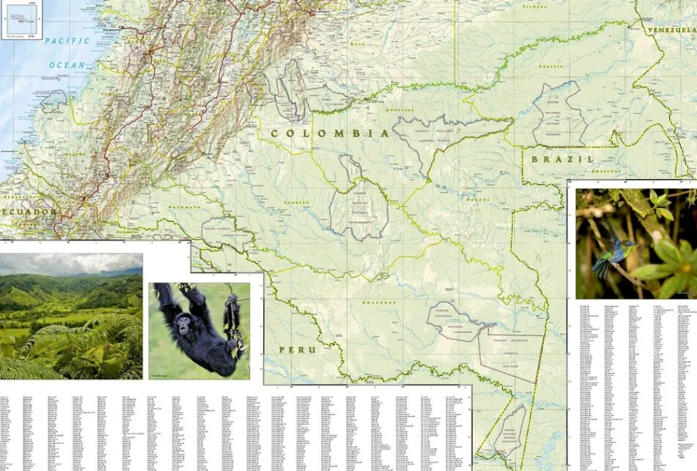 Gelamineerde wegenkaart, waterproof en scheurbestendig, van Colombia.