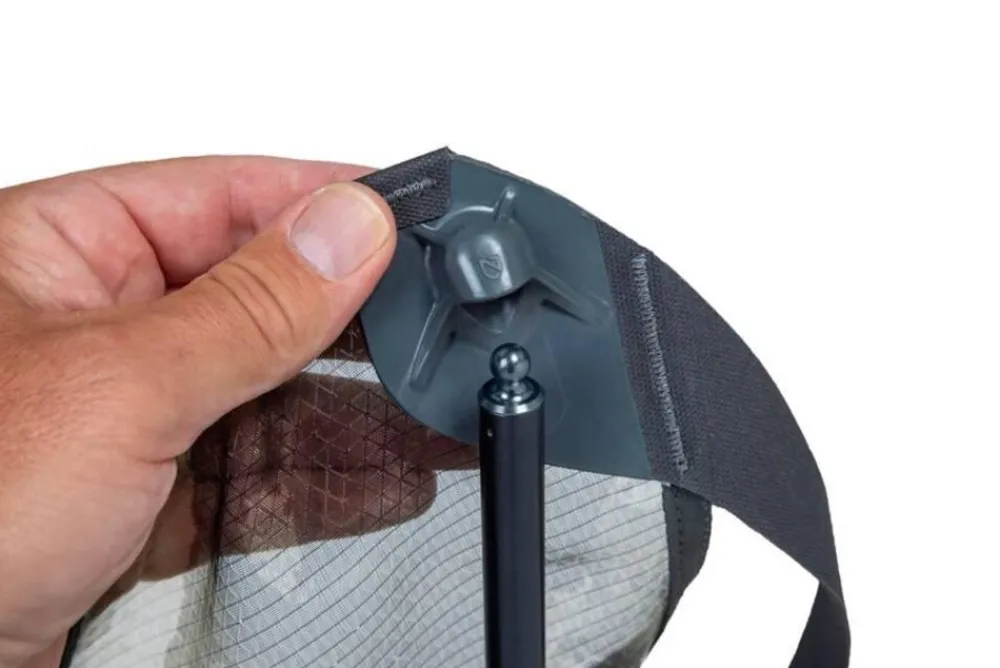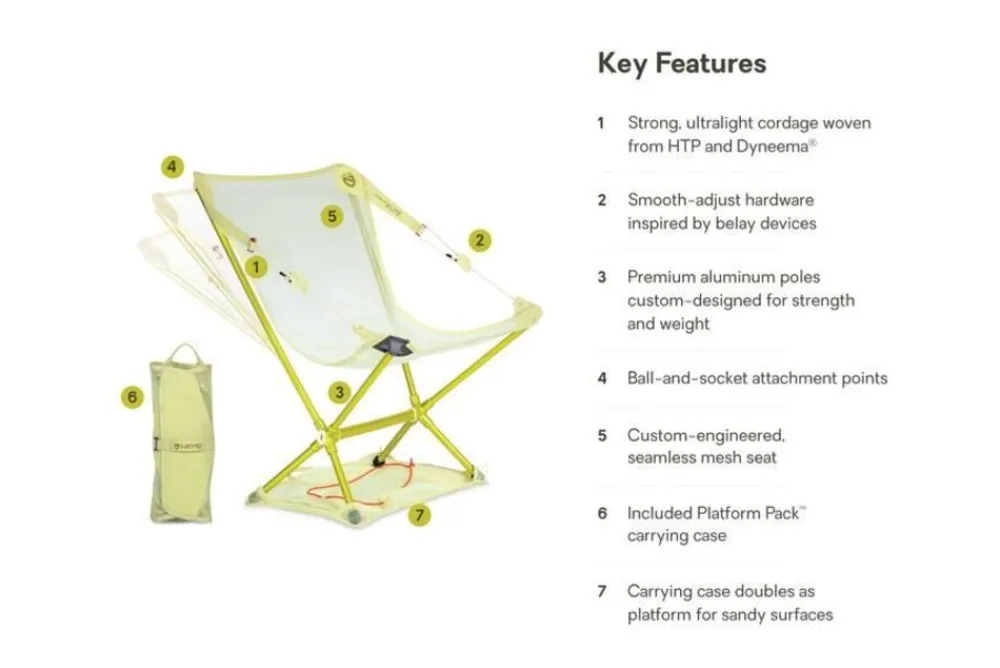 Met een gewicht van slechts 617 gram elimineert de Moonlite™ Elite van Nemo is een verstelbare campingstoel elk excuus om comfort achter je te laten als je op pad gaat. De Moonlite Elite heeft zowel een verstelbare rugleuning als stabiele ondersteuning en beschikt over innovatieve ontwerpoplossingen die onnodig gewicht verwijderen en ervoor zorgen dat de stoel gemakkelijk in uw rugzak past. Het gloednieuwe ophangsysteem van de stoel ruilt het web in voor slank touwwerk dat HTP en Dyneema® combineert, twee vezels die hun sterkte en waterbestendigheid hebben bewezen door beproefd gebruik bij rotsklimmen, zeilen en andere veiligheids kritische activiteiten. Dit zeer sterke snoer wordt door een prachtig ontworpen stuk hardware gevoerd (geïnspireerd op zekeringsapparaten) dat licht van gewicht is, onopvallend en zorgt voor het soepele achterover leunen van de stoel. Zowel het gesmede aluminium naven als de gegoten hoeksteunen zijn strategisch geoptimaliseerd voor gewicht, terwijl de indrukwekkende sterkte en betrouwbare duurzaamheid behouden zijn gebleven. Dit proces van het ‘skeletoniseren’ van de hardware verwijdert elk grammetje onnodig materiaal en is het resultaat van het oplossen van complexe ontwerpproblemen en grondige technische analyses. Het resultaat? Een verhoogd, doordacht ontwerp en een echte backpackstoel die ongeëvenaard is op de markt. Even uniek is de draagtas van Moonlite Elite, het Platform Pack™ in gereedschapsrolvorm, dat ook dienst kan doen als optioneel platform dat stabiliteit toevoegt op zandige oppervlakken. Ten slotte is de zitting van de stoel gemaakt van een op maat ontworpen, post-consumer gerecycled gaas dat polyester- en TPU-vezels combineert voor een naadloos ontwerp dat het lichaam comfortabel omhult. Dit naadloze stoelontwerp wordt aan het frame bevestigd met minimale kogelgewrichten die roteren en uitlijnen met het lichaam om ongemakkelijke drukpunten te voorkomen.