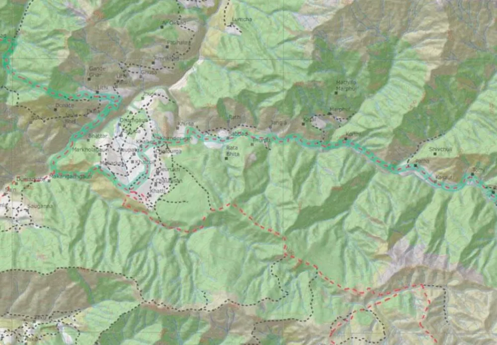 Wandelkaart van het traject van de Rolwaling & Everest regio van de Great Himalaya Trail.