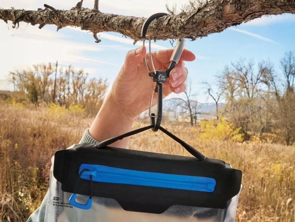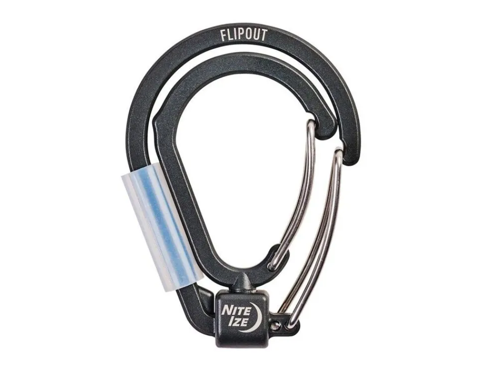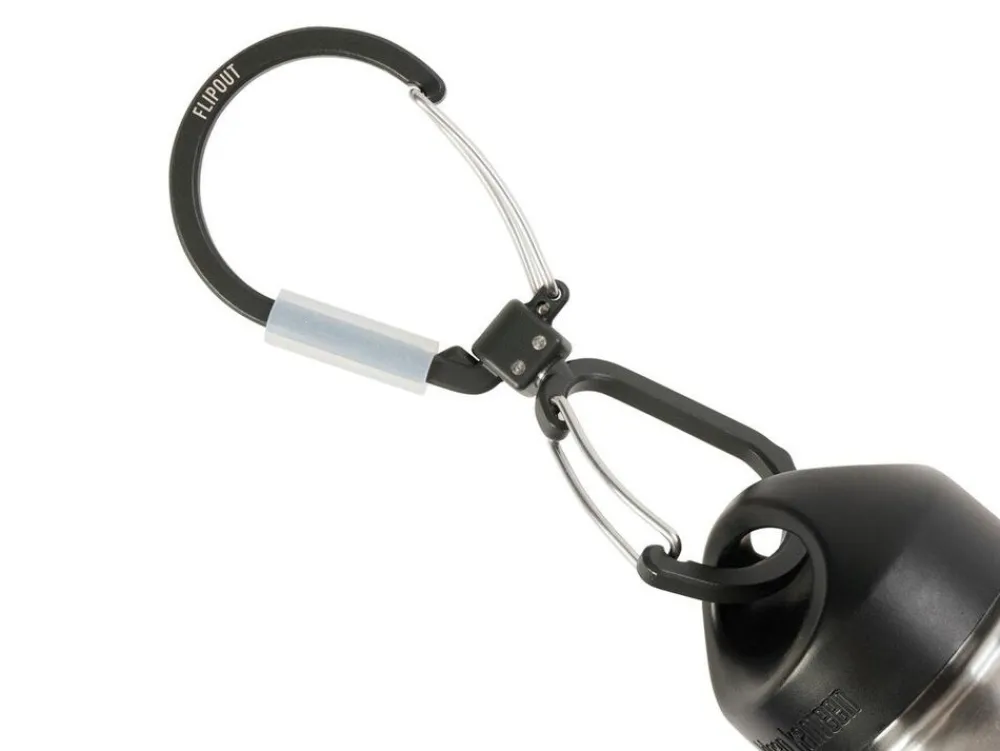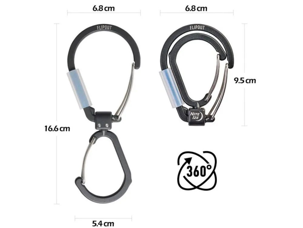 Nite Ize FlipOut, deze 360° draaibare dubbele karabijnhaak draait in twee richtingen en vouwt in zichzelf op. Hierdoor is hij compact om mee te nemen en kun je je spullen vastklemmen. Deze dubbele karabijnhaak heeft twee poorten om spullen aan vast te maken, draait 360° rond en kan zowel open als gesloten gebruikt worden. De FlipOut is gemaakt van duurzaam gegoten aluminium en heeft een maximale werklast van 18 kilo, zodat je grote rugzakken, slangen, waterflessen, schoenen, planten en nog veel meer kunt vastklemmen en vastzetten. Houd één kant vastgeklemd aan een tas of bevestigingspunt terwijl de andere kant vrij hangt en spullen vasthoudt. De dubbele roestvrijstalen geveerde openingen kunnen bagage, rugzakuitrusting, sportuitrusting, noem maar op, met elkaar verbinden. Je kunt de dubbele karabijnhaken ook in elkaar schuiven en als een enkele compacte haak gebruiken.