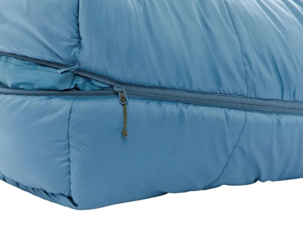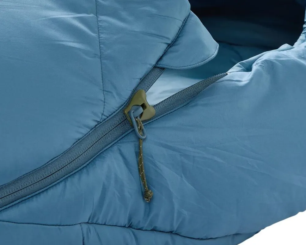 De tweewegrits met een jam guard biedt extra gemak, zodat je de ventilatie kunt aanpassen wanneer nodig. Of je nu midden in de nacht wat meer frisse lucht nodig hebt of juist wat meer warmte als je je nestelt, de aanpassingen zijn eenvoudig te maken. En dankzij het milieubewuste ontwerp, gemaakt van 100% gerecyclede stoffen en vulling, kun je je goed voelen over je ecologische voetafdruk terwijl je de natuur verkent.