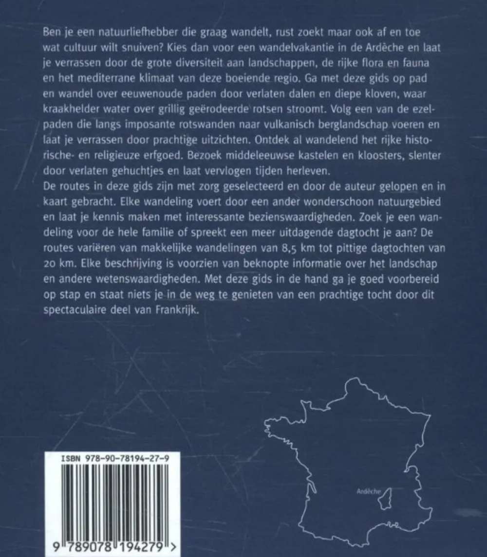Ben je een natuurliefhebber die graag wandelt, rust zoekt maar ook af en toe wat cultuur wilt snuiven? Kies dan voor een wandelvakantie in de Ardèche en laat je verrassen door de grote diversiteit aan landschappen, de rijke flora en fauna en het mediterrane klimaat van deze boeiende regio. Ga met deze gids op pad en wandel over eeuwenoude paden door verlaten dalen en diepe kloven, waar kraakhelder water over grillig geërodeerde rotsen stroomt. Volg een van de ezel-paden die langs imposante rotswanden naar vulkanisch berglandschap voeren en laat je verrassen door prachtige uitzichten. Ontdek al wandelend het rijke historische- en religieuze erfgoed. Bezoek middeleeuwse kastelen en kloosters, slenter door verlaten gehuchtjes en laat vervlogen tijden herleven.