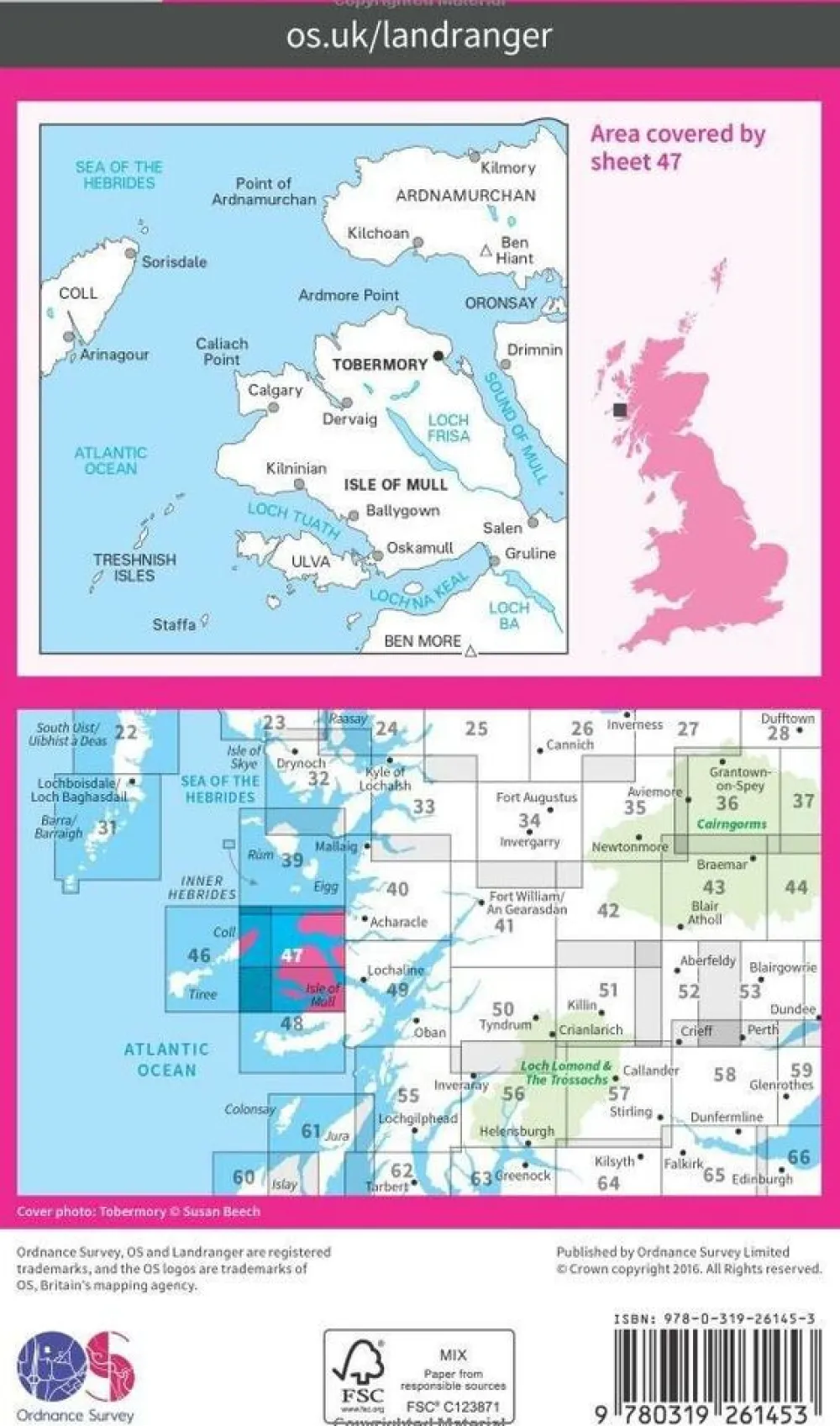 Zeer gedetailleerde, topografische wandelkaart Ordnance Survey Landranger 047 voor het gebied rond Tobermory & North Mull: