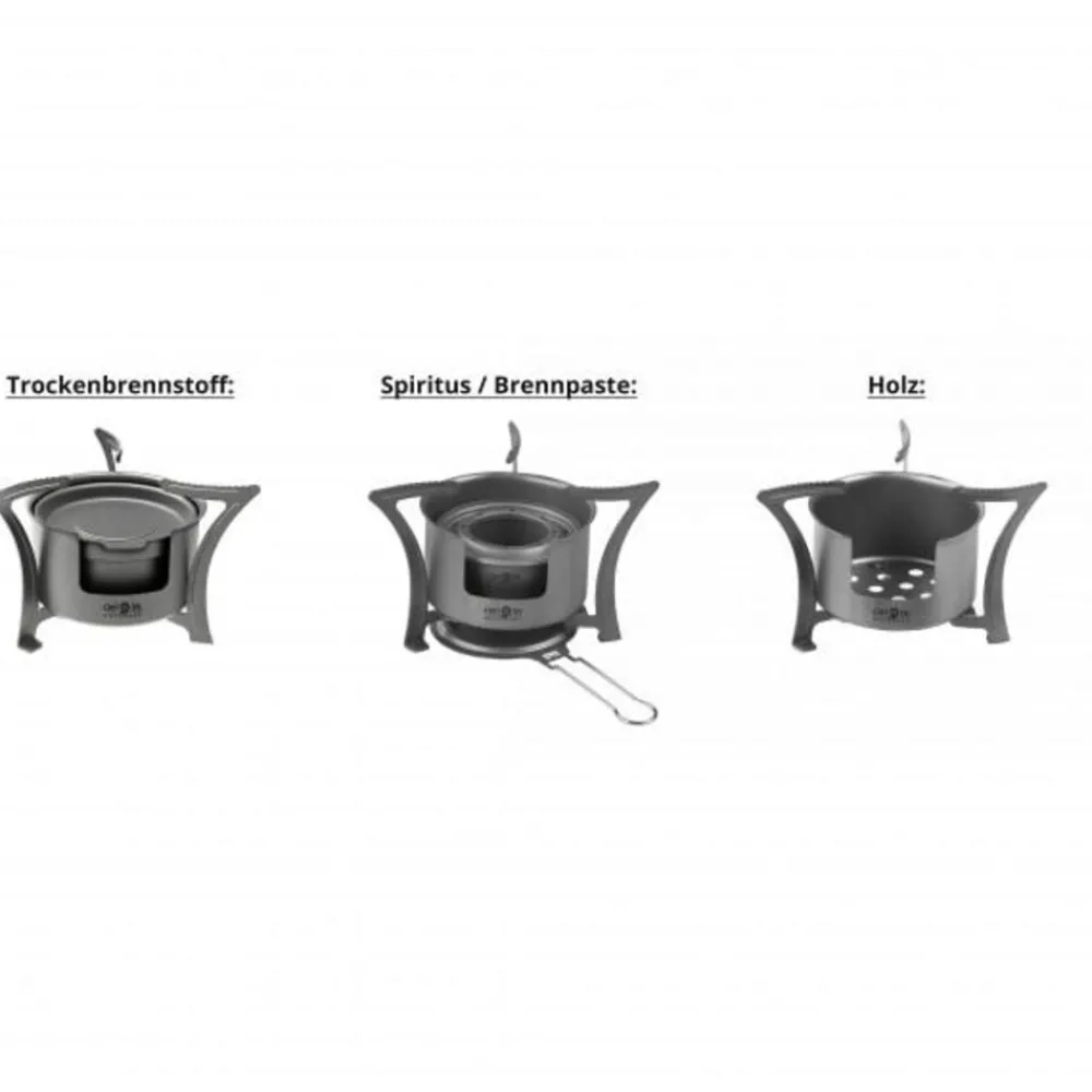 De ultralichte titanium combi-kooktoestel is geschikt voor gebruik met alcohol, brandpasta en vaste brandstoffen zoals droge brandstof of hout. De inzet voor alcohol is eenvoudig te verwijderen, waarna de kooktoestel kan worden gevuld met hout of brandpasta. Een deksel beschermt de onderkant tegen sintels, maar kan ook worden gebruikt met de spiritusbrander voor droge brandstoftabletten. Het handvat van het deksel kan indien nodig worden verwijderd. Het kooktoestel is perfect te combineren met de Origin Outdoors titanium kampeerpot (artikel 562105). Deze robuuste en compacte kooktoestel is veelzijdig en ideaal voor de echte buitenliefhebber.