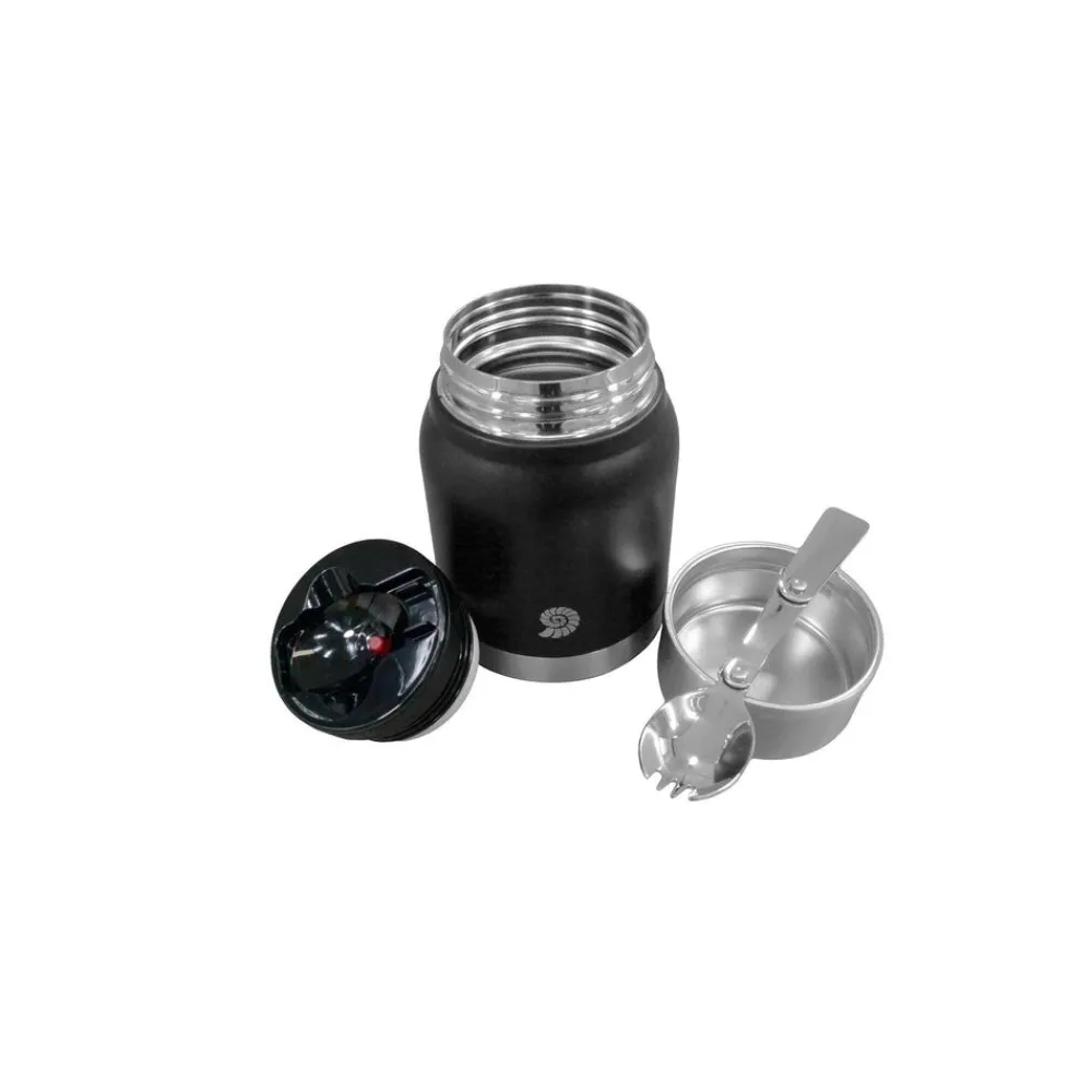 De Food container Deluxe van Origin Outdoors is gemaakt van hoogwaardig roestvrij staal met een grote opening. Deze houdt je eten lang warm (tot 6 uur) of lang koel (tot 12 uur). Een inklapbare roestvrijstalen lepel die in het deksel is geïntegreerd maakt het vullen, eten en schoonmaken makkelijker. Het deksel kan ook gebruikt worden als kom of mok. Ideaal voor buiten, op school en op het werk.