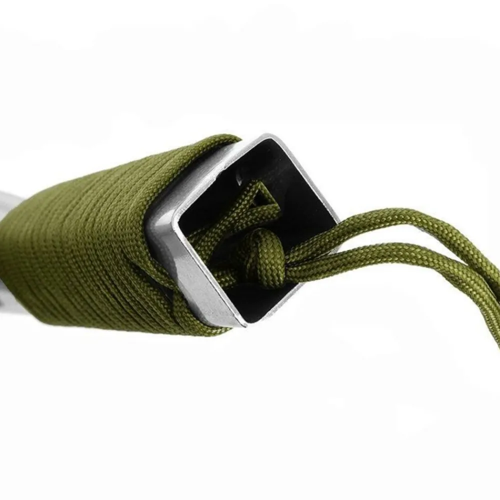 De schop is gemaakt van hoogwaardig roestvrij staal en is zeer goed bestand tegen roest. Het handvat is omwikkeld met een 3 meter lang Parakoord, wat erg handig is in noodsituaties. Voorzien van draagkoord en nylon hoesje.