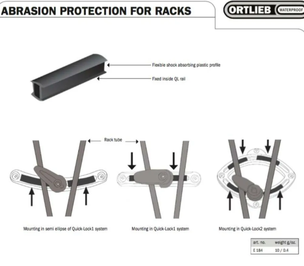 De Ortlieb Abrasion Protection biedt bescherming voor de onderste rail van Ortlieb fietstassen: