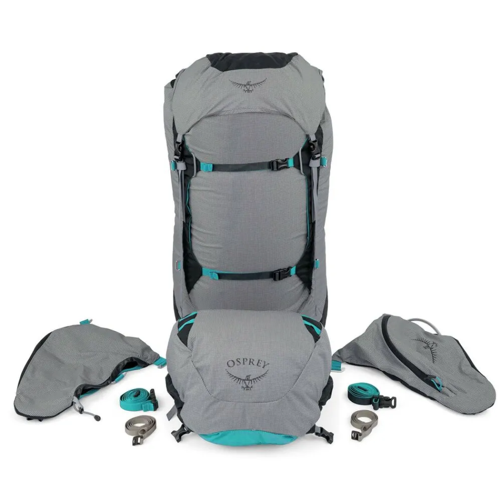 De Osprey Ariel Pro 65 is de ideale rugzak voor trekkers die lang de backcountry ingaan/expedities doen, maar toch ook op het gewicht letten. De specifieke damespasvorm is wat korter in het rugframe en de schouder- en heupbanden zijn wat anders gevormd dan de herenvariant. Het NanoFly® 210D Nylon materiaal is licht in het gewicht, maar toch ook uitzonderlijk stevig. Men kent dit materiaal van bijvoorbeeld de ultralichtgewichte Osprey , de lichtste rugzak die Osprey maakt. Echter is een duidelijk verschil dat er bij de Ariel Pro niet bespaard wordt op het draagcomfort. Je kunt met de Ariel Pro dus ook gemakkelijk zware lasten in je tas dragen. Waar een Lumina tot ongeveer 10KG comfortabel draagt, kun je met een Ariel Pro gemakkelijk lasten van 20KG dragen. Ideaal dus als je op expeditie gaat, vele dagen aan eten moet meenemen, maar dit toch op een zo licht mogelijk manier probeert te doen. De zijvakken en het topvak kunnen nog losgekoppeld worden om een overige 300gr te besparen. Een consequentie van de gewichtsbesparing is uiteraard wel dat meeste ritsen en vakken wegbespaard zijn en dat de Ariel Pro alleen een bovenopening op de rugzak heeft, alhoewel dit voor de échte die-hards natuurlijk geen probleem is.