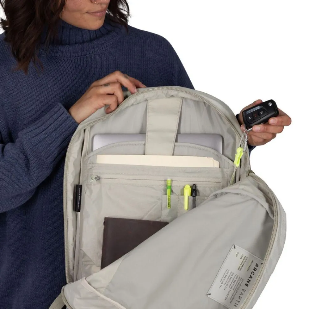 Gemaakt van 100% gerecycled ReComp™-garen, gecertificeerd door derden en vervaardigd met 30% van Osprey ’s eigen fabrieksresten die anders op de vuilnisbelt zouden belanden, is de Osprey Arcane Earth Large Day een compromisloze stap voorwaarts in materiaalinnovatie. Met een J-rits, zakken en een gevoerd laptopvak biedt deze ruime dagrugzak alledaagse spullen een goede indeling en ziet er bovendien nog goed uit ook.