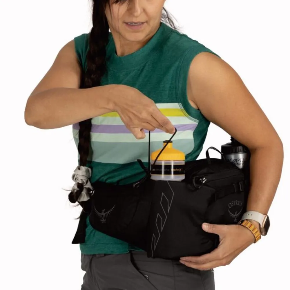 De Tempest 6 is de ideale heuptas: Dubbele heupgordelzakken bieden toegang tot uw snacks of telefoon tijdens het bewegen, terwijl de horizontale WingJacket-compressie de inhoud van het hoofdvak vastzet en externe opslag van een lichte jas mogelijk maakt. De BioStretch-heupgordel stabiliseert het dragen tijdens dynamische bewegingen en dubbele fleshoezen houden hydratatie bij de hand.