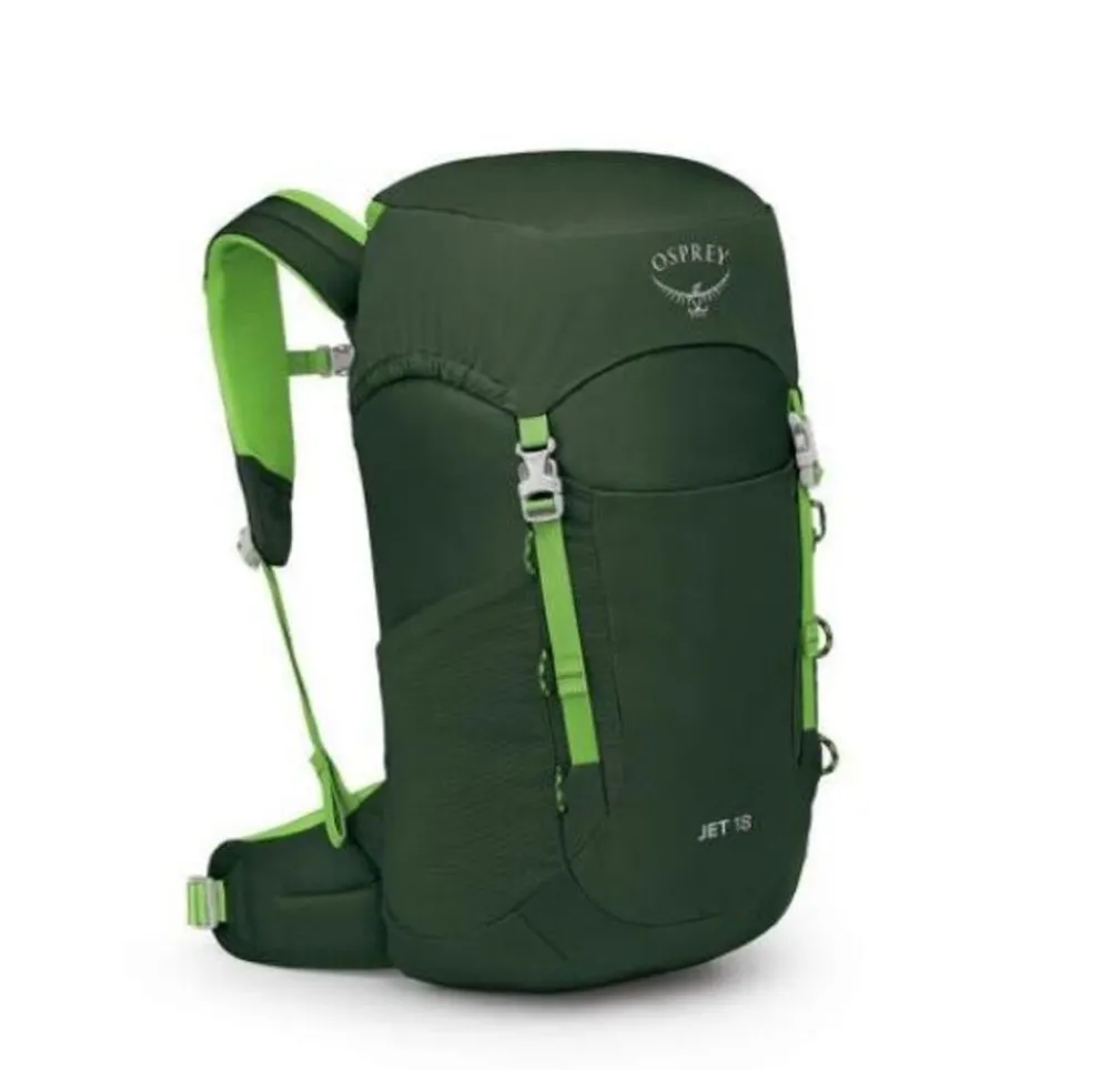 De Jet 18 van Osprey is een kleine en handige hikingrugzak voor de kleine wandelaar. Zo kan uw kind gemakkelijk zijn eigen lunch en regenjas dragen tijdens een wandeling in de bergen.