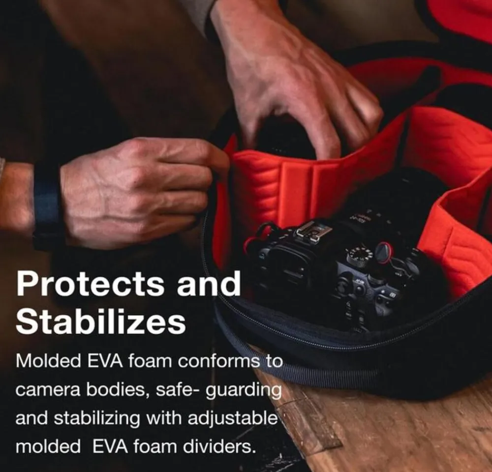 - Gegoten EVA-schuim past zich aan de camerabody aan