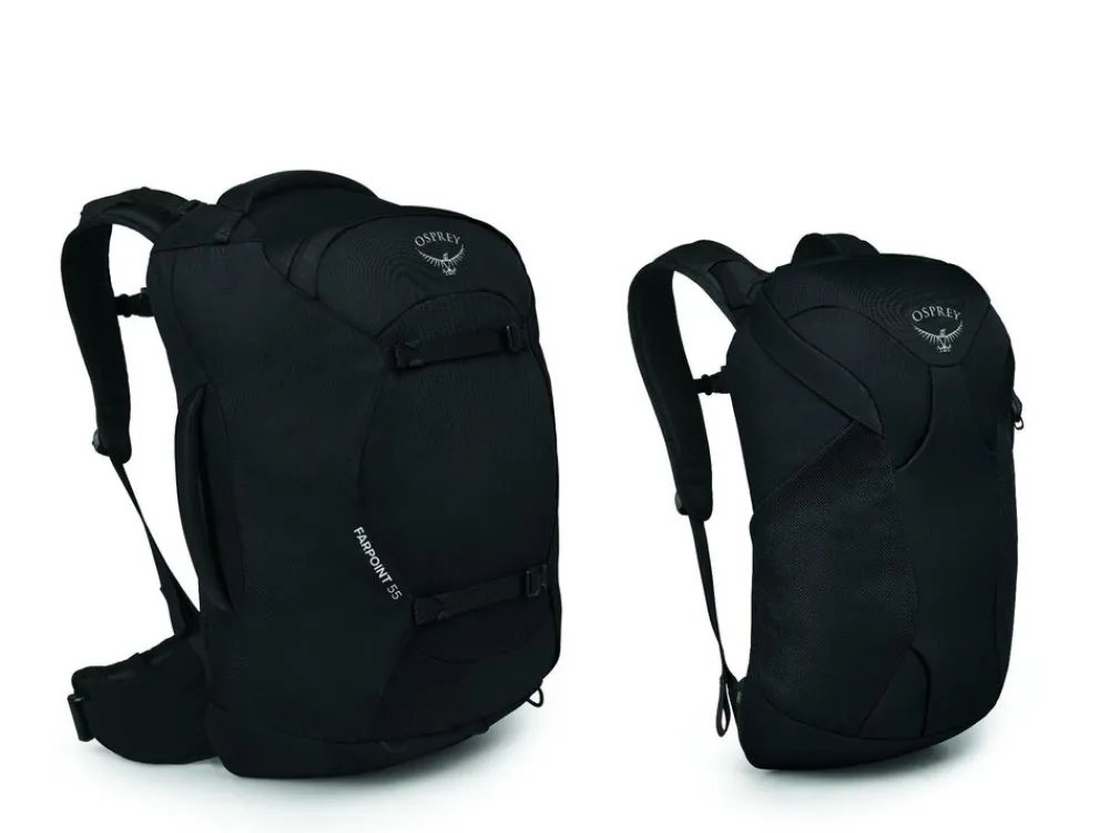 De Farpoint 55 van Osprey, is een lichtgewicht travelpack. Handig in gebruik, goed overzicht in de tas, en makkelijk mee te nemen. De tas is voorzien van allerlei handigheidjes, zo kun je de schouderbanden en heupband achter een flap wegritsen, zo heb je geen flightbag meer nodig. Ook kan je de ritsen met een slotje afsluiten zodat niemand zomaar in je tas kan, en heel handig, er zit een kleine daypack aan vast, deze kun je ook nog aan de voorkant van de tas hangen met clips, zodat je er zicht op hebt in een drukke omgeving,