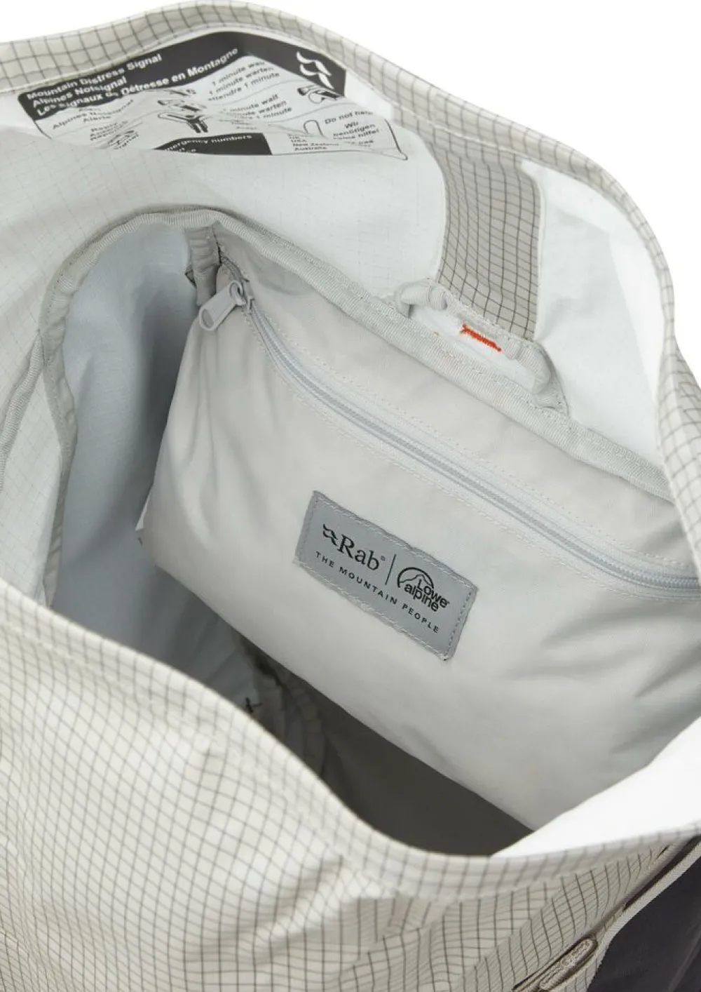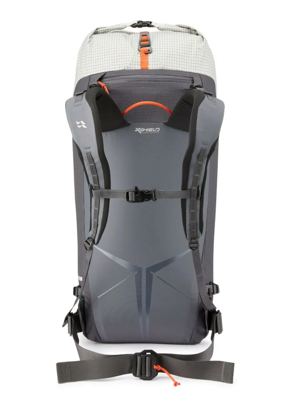 De Latok 38 van Rab is een lichtgewicht, minimalistische klimrugzak. De rugzak heeft meerdere afneembare onderdelen om nog lichter op pad te gaan. Zo kan je het foam uit het rugpand halen en de compressiebanden er makkelijk opdoen en er afhalen. De Latok is gemaakt van zeer stevig materiaal. Hier bovenop zit nog een HydroShield afwerking. Samen met een roll top afsluiting maakt dit de rugzak zeer weerbestendig. Het X-Shield rugpand zit dicht tegen het lichaam voor maximale bewegingsvrijheid.