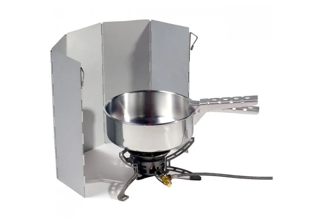 Met het Aluminium Opvouwbaar Windscherm van Relags wordt buiten koken een stuk minder frustrerend. Het windscherm zorgt ervoor dat de vlam van je brander stabieler brandt en voorkomt dat brander door de wind uit kan waaien.