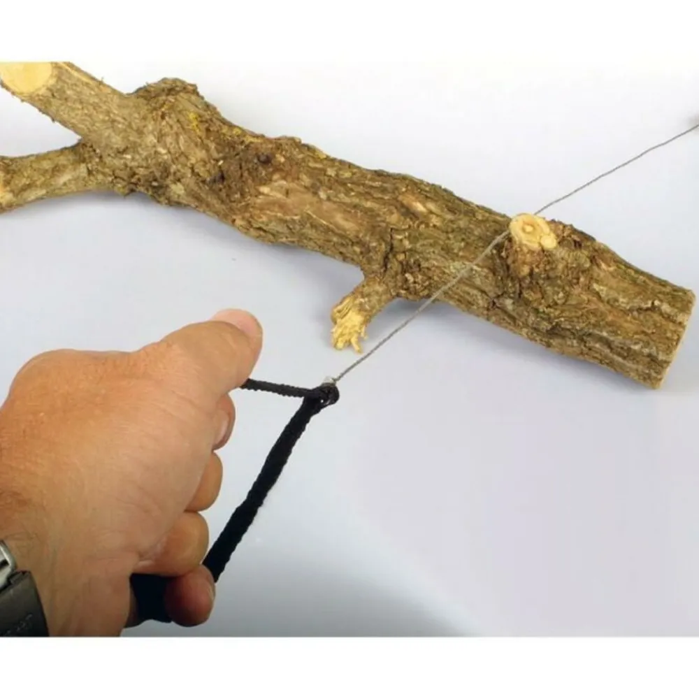 De Relags Draadzaag is opgebouwd uit 8 gevlochten draden, de uiteindes zijn gemaakt van handige lussen. In combinatie met een sterke tak is het mogelijk om een handzaag te maken. De Relags draadzaag heeft een lengte van 58cm en kan gebruikt worden voor het doorzagen van hout, plastic en bot.