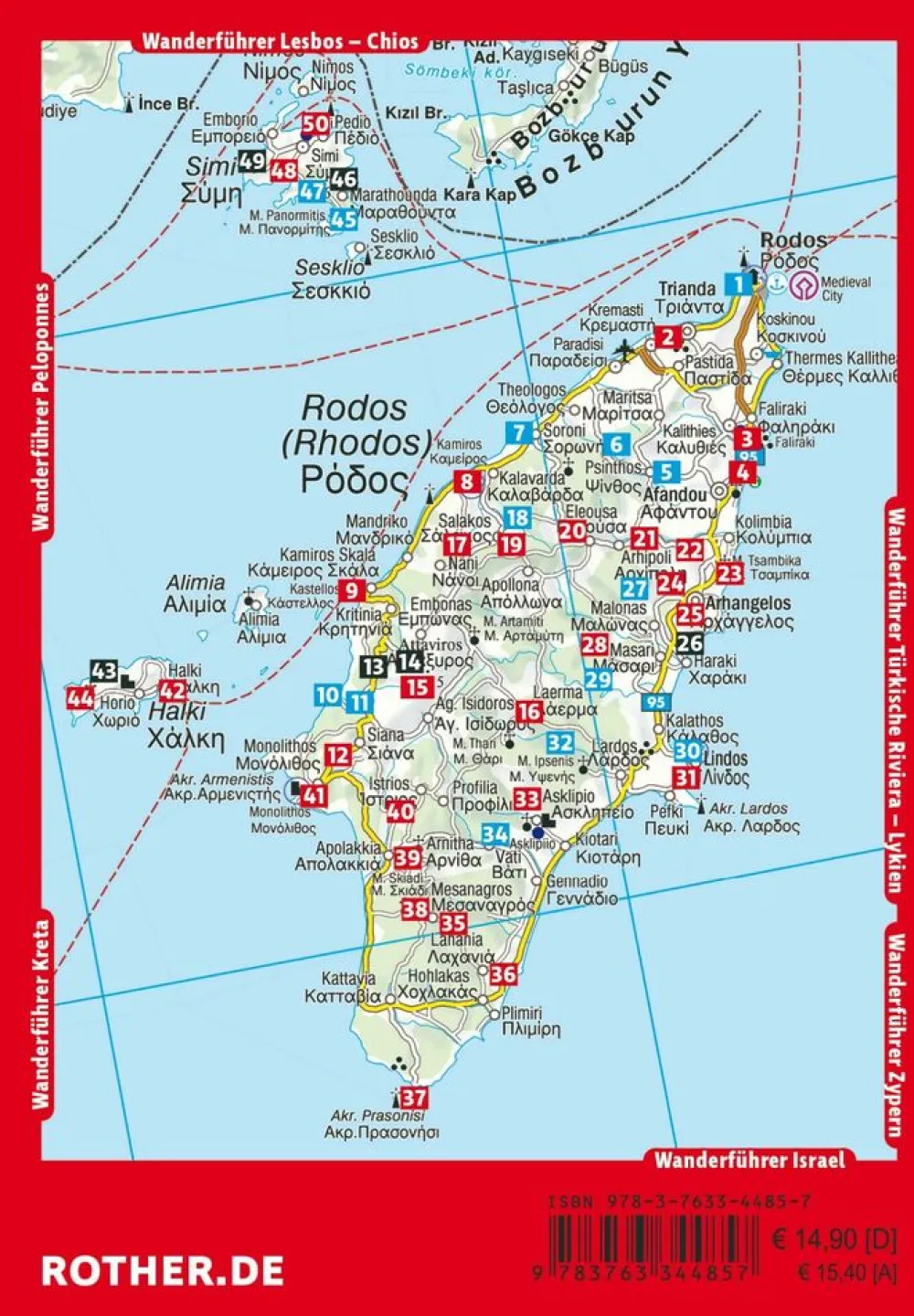 Duitstalige wandelgids met 50 dagwandelingen langs bergen en kuststreken op Rhodos en de nabijgelegen eilanden Simi en Halki.