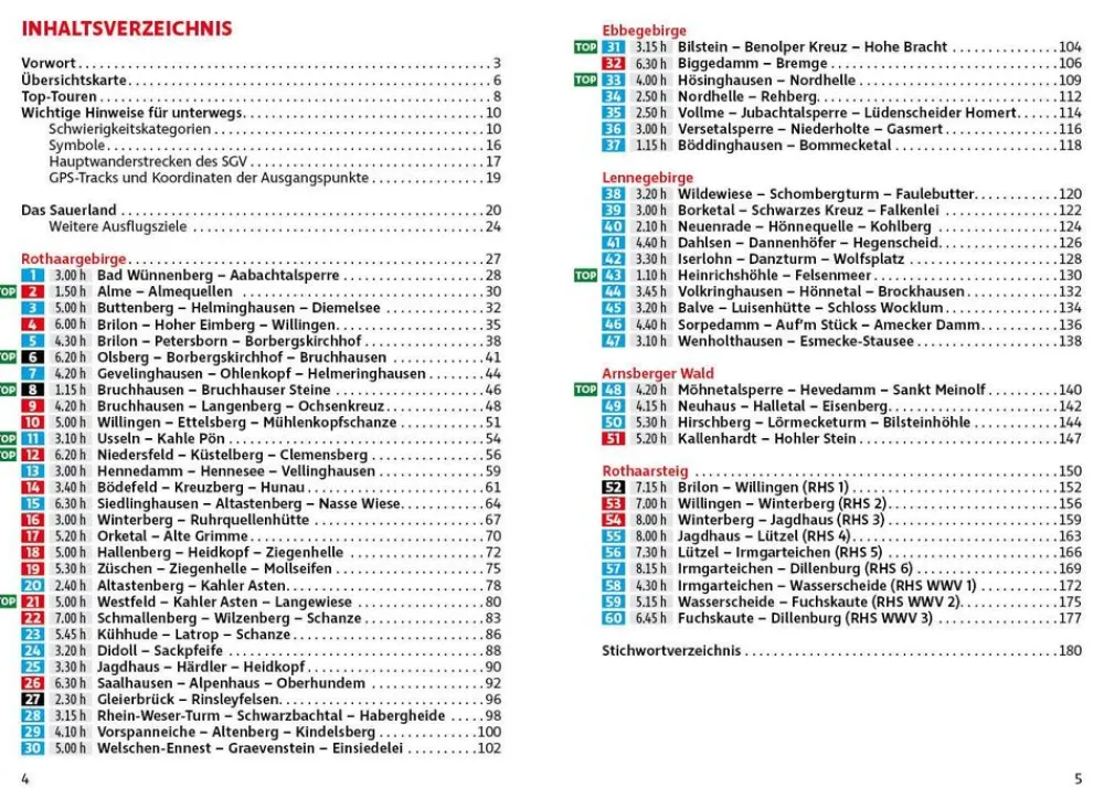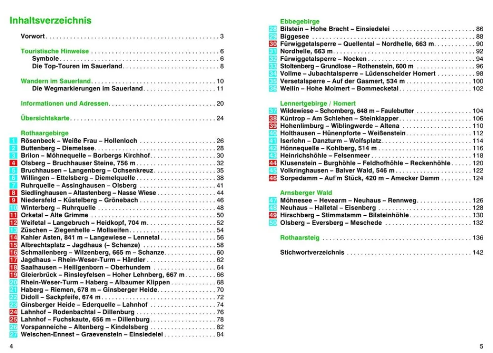 Leicht erreichbare touristische Superlative wie Kahler Asten, Möhne, Biggesee oder Kindelsberg erschließt dieser Führer ebenso wie Schönheiten, die Wanderstiefel, Proviant im Rucksack und Ausdauer verlangen – eine Auswahl also für jede Kondition und für jedes Wetter: Der Gang durchs faszinierende Felsenmeer ist ebenso vertreten wie der Aufstieg zu den Lavatürmen der Bruchhauser Steine; die Rothaar-Kammwanderung ebenso wie die Fast-Trekkingtour über die Siegerlandhöhen oder der Badespaziergang zur Glör. Und wer Wandervorschläge kombiniert, kann 70 km vom Jagdberg zum Asten trecken. Zugleich trägt dieser Führer der Tatsache Rechnung, dass das Sauerland als Mittelgebirge nicht unberührte Natur, sondern Kulturlandschaft ist. Er weist auf die kulturellen Sehenswürdigkeiten hin, die die Begegnung zwischen Mensch und Gebirge im Sauerland hervorgebracht hat.
