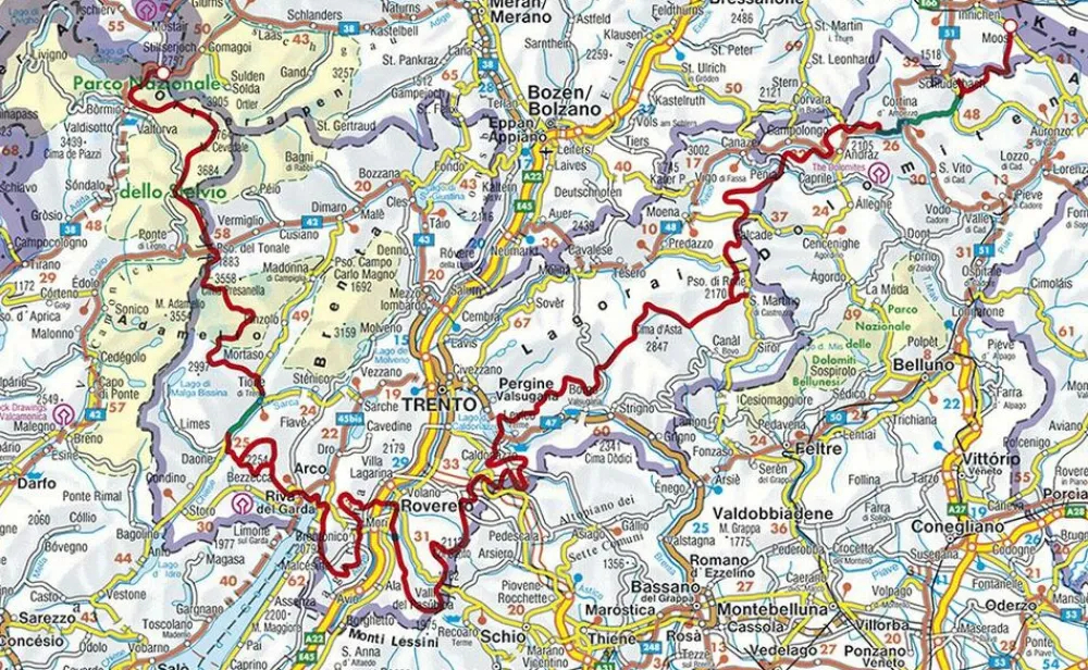 Der Rother Wanderführer »Sentiero della Pace – Auf dem Friedensweg vom Vinschgau in die Dolomiten« beschreibt ausführlich alle 45 Etappen vom Stilfser Joch bis nach Sexten und liefert interessante Einblicke in einen unbegreiflichen Krieg inmitten der Alpen. Die Autorin liefert detaillierte Informationen über Etappen, Übernachtungsmöglichkeiten sowie das Wandern mit Hund und macht sinnvolle Vorschläge, welche Etappen sich als Tageswanderungen oder mehrtägige Hüttentouren für jeden Schwierigkeitsgrad anbieten. Schroffe Felszacken ragen empor, die Sicht reicht viele hundert Kilometer weit, irgendwo plätschert ein glasklarer Gebirgsbach und das Pfeifen der Murmeltiere wird zum treuen Begleiter – wer auf einem der mehr als 30 Aussichtsgipfel oder Pässen des Sentiero della Pace steht, bekommt überwältigende Glücksgefühle. Nur, um im nächsten Moment ehrfürchtig durch einen Schützengraben zu laufen, einen Kriegsstollen mit Taschenlampe zu durchschreiten oder mit hallenden Schritten eine Festungsanlage aus dem Ersten Weltkrieg zu erkunden. Der historisch bedeutendste Fernwanderweg Italiens weckt Emotionen wie kaum ein anderer Weg und besticht durch eine außergewöhnlich abwechslungsreiche Wegführung auf alten Kriegspfaden aus dem Ersten Weltkrieg. Sechs verschiedene Alpenregionen umfasst der fast 700 Kilometer lange Friedensweg, der mit besonderer Sinnhaftigkeit zeigt, wie vielseitig die Alpen zwischen 75 und 3343 Metern sind: mächtige, zum Greifen nahe Gletscher, blühende Almwiesen, rauschende Wasserfälle, hübsche Bergdörfer, in der Sonne glitzernde Bergseen und bezaubernde Hütten – allesamt in größtenteils einsamen Alpenregionen, die reich an einer lebendigen Tierwelt sind. Ein absoluter Traum für Bergwanderer!