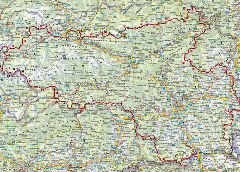 Auf zwei Routen lässt sich die Tour durch die Steiermark erwandern: Die Nordroute führt ab dem Dachstein in 35 Etappen durch den Nationalpark Gesäuse und über den Hochschwab bis nach Bad Radkersburg im Thermenland. Auf der Südroute geht es in 25 Etappen über die Schladminger Tauern, durch die Bergwelt rund um Krakau, durch den Naturpark Zirbitzkogel-Grebenzen und das Schilcherland bis nach Leibnitz.