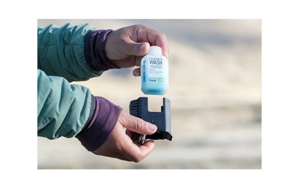 - De Wilderness Wash-fles kan compact worden opgeborgen en vervolgens worden omgedraaid voor een gemakkelijke dosering