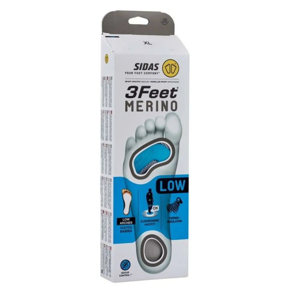 De Sidas 3 Feet Merino Low is een goed ondersteunende en comfortabele inlegzool, speciaal voor voeten met een gemiddelde voetboog. Deze zool is ook te krijgen voor een gemiddelde voetboog (3 Feet Merion Mid) en een hoge voetboog (3 Feet Merino High).