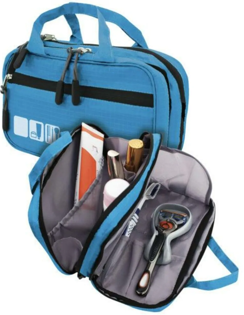 Praktisch ruim toilet tasje, ideaal voor het opbergen van toiletartikelen. 2 Hoofdvakken met ritssluiting en voorzien van diverse opbergvakjes, extra ritsvakje aan voorzijde.