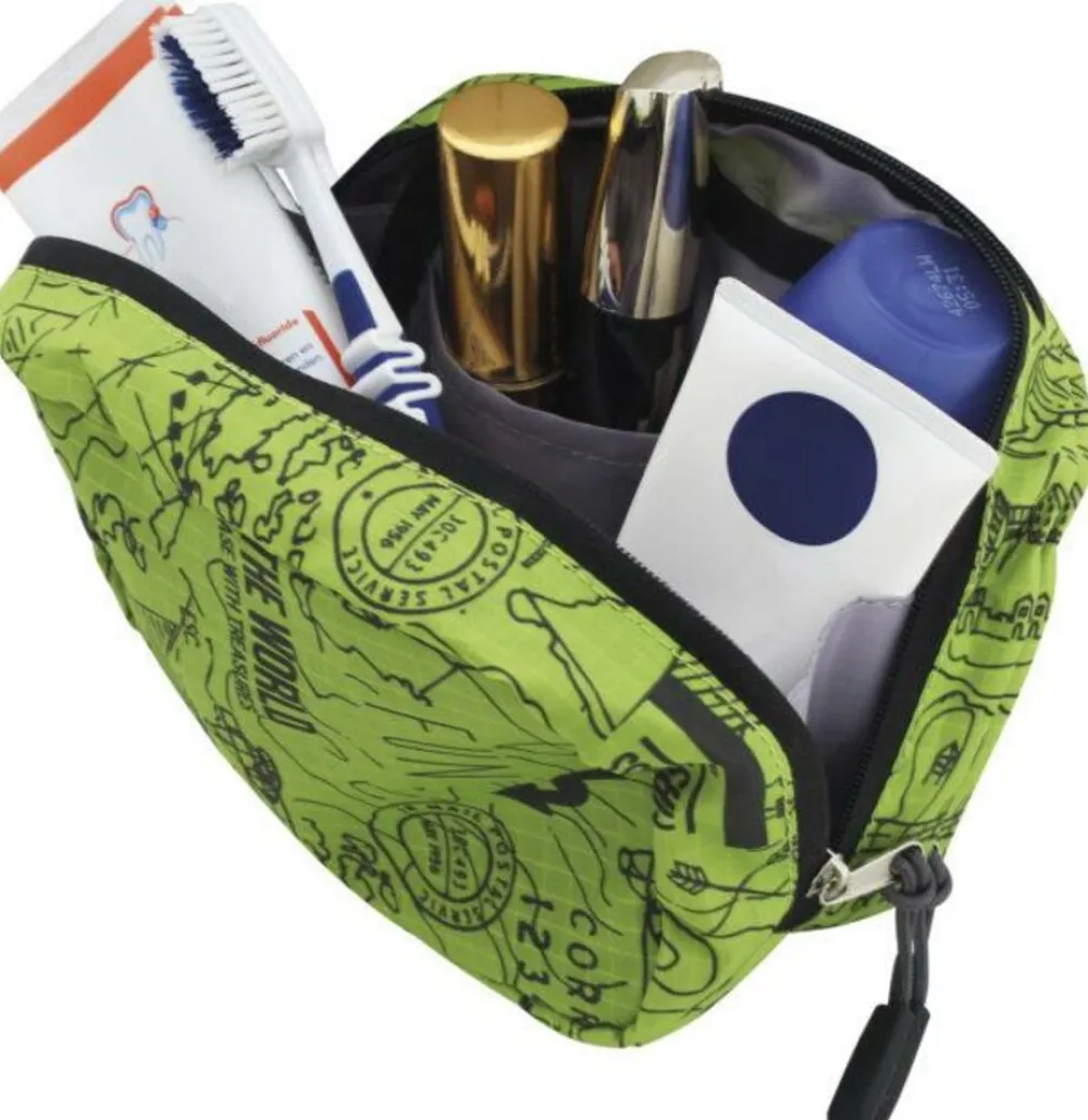 Toilet tasje in de maat Small, ideaal voor het opbergen van o.a. make-up en kleine toiletartikelen. Hoofdvak met ritssluiting en extra voorvakje. Gemaakt van polyester met een originele wereld print.