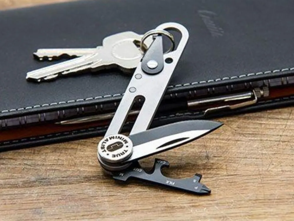 Een uitermate handig en multifunctioneel non-locking zakmes. Het lemmet is vervaardigd uit zwart gecoat titaniumstaal. Daarnaast bevat het mes drie schroevendraaiers, een vijl, een opener en een gordelsnijder. Dankzij de geïntegreerde karabijnhaak kunt u het mesje gemakkelijk aan uw riemlus of sleutelbos hangen. De verpakking bevat bovendien een gratis sleutelring.